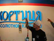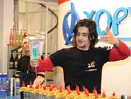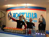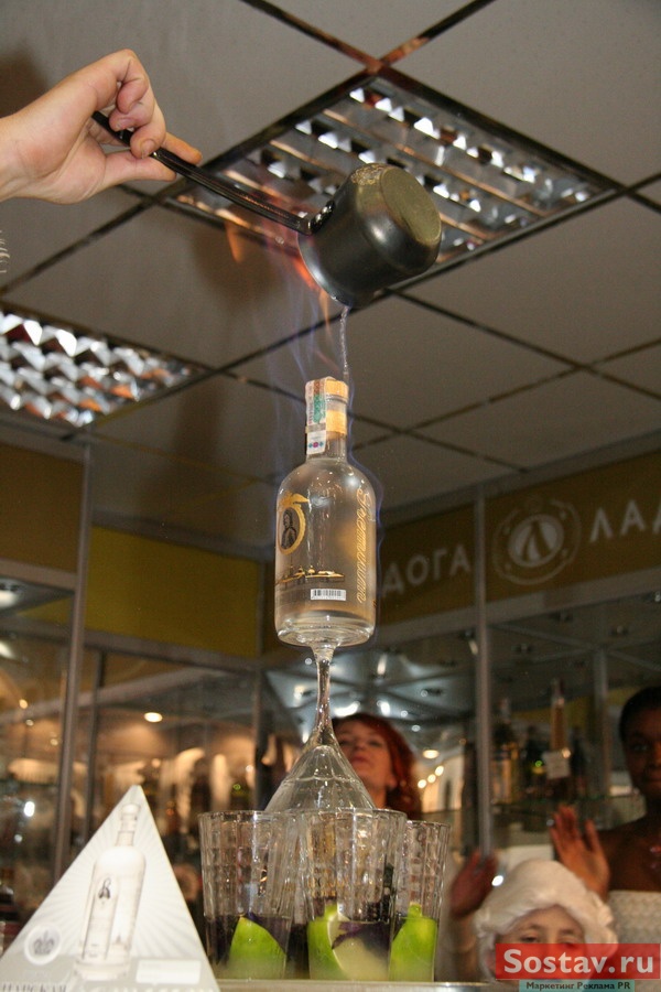 Бар-шоу от Царской водки (Ладога) S=42 кв.м на втором этаже Ладоги. На заднем плане - плакат. Хортиця (ТД "Мегаполис"). S=36+36 кв.м. Украинская водка зажгла по полной! Каждый сет бар-шоу собирал 100-150 зрителей.