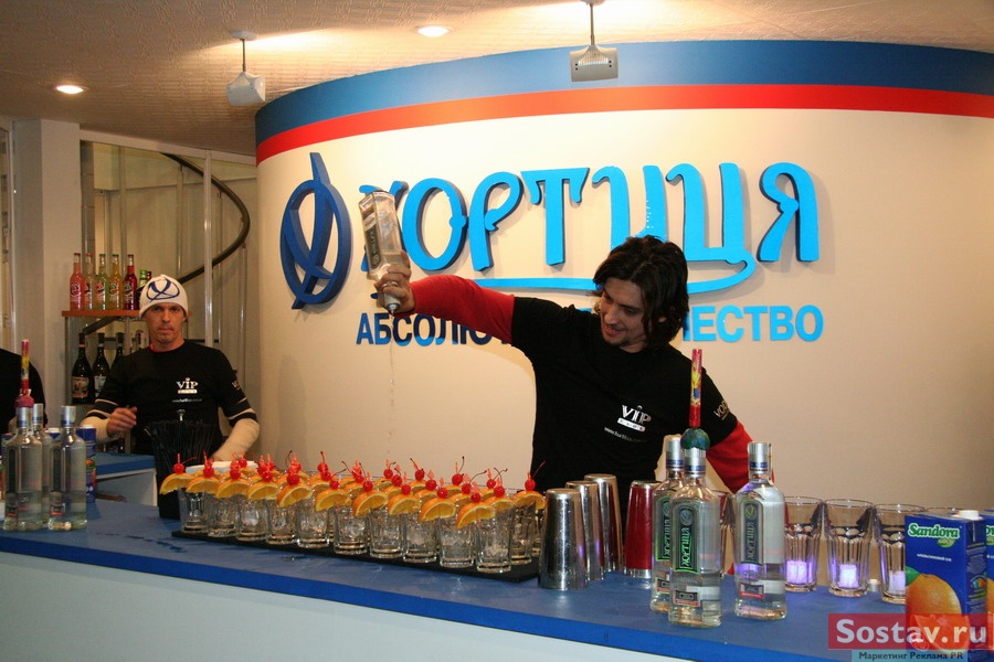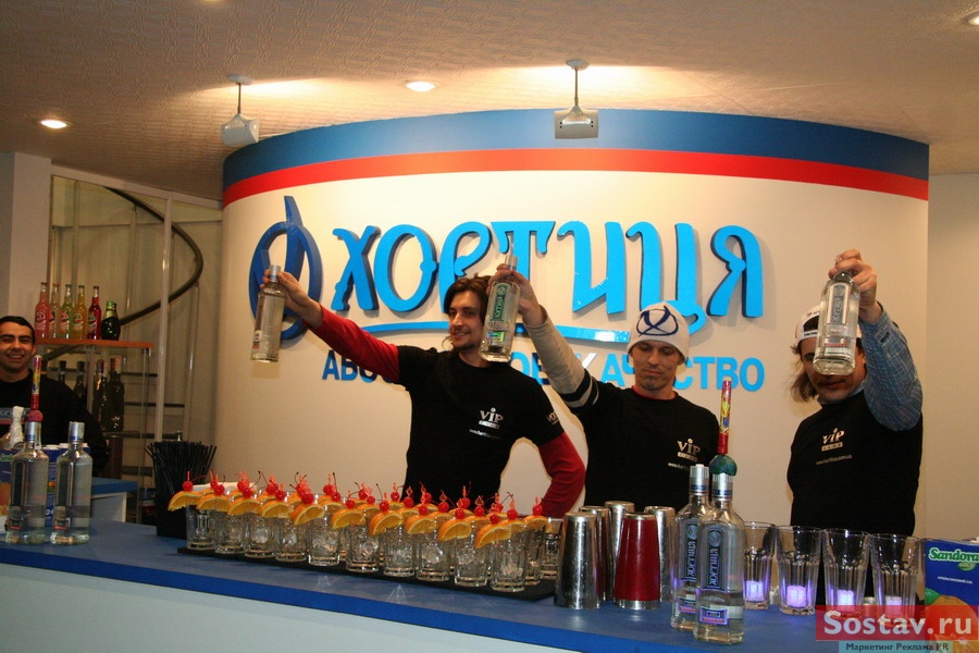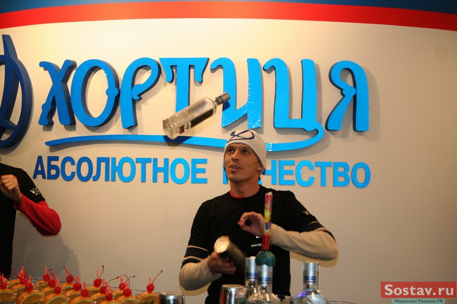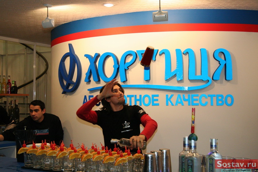 Хортиця (ТД "Мегаполис"). S=36+36 кв.м. Украинская водка зажгла по полной! Каждый сет бар-шоу собирал 100-150 зрителей.