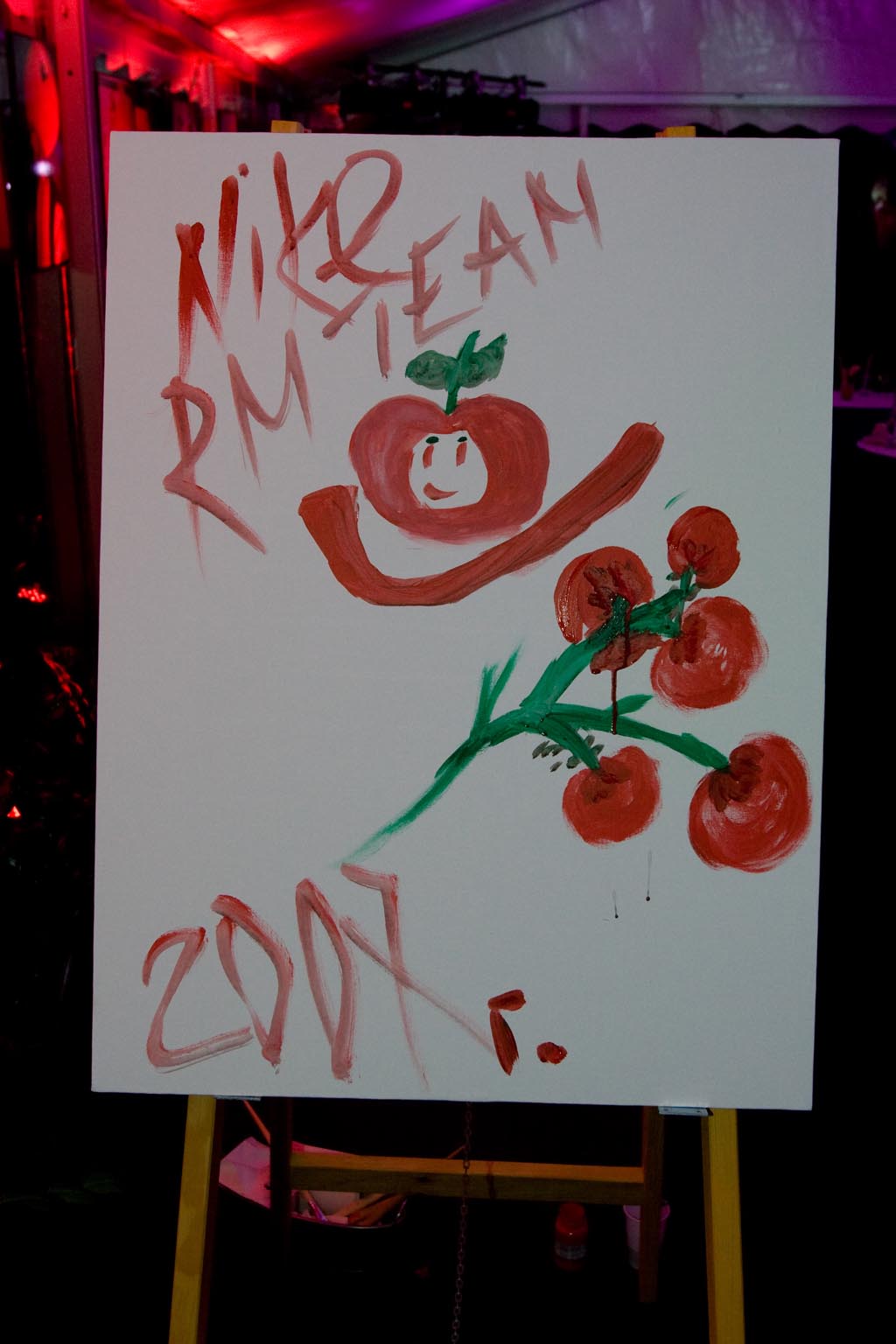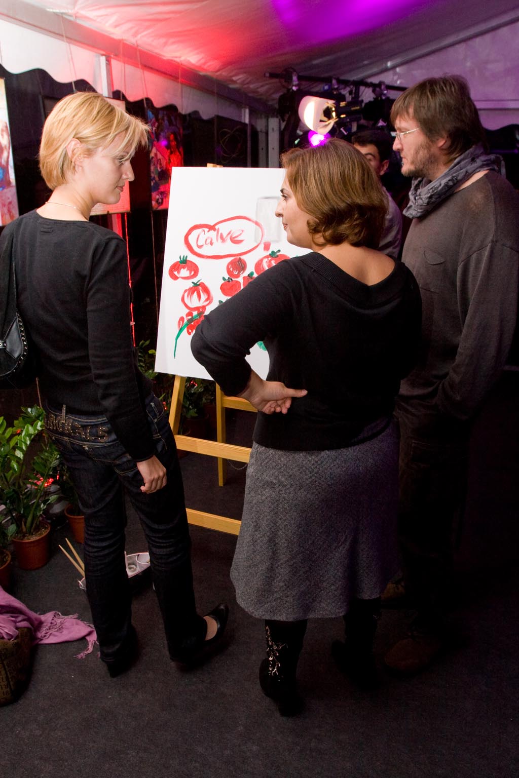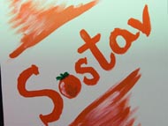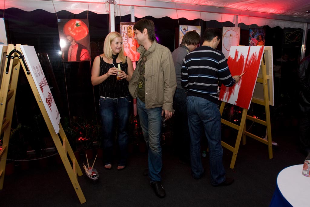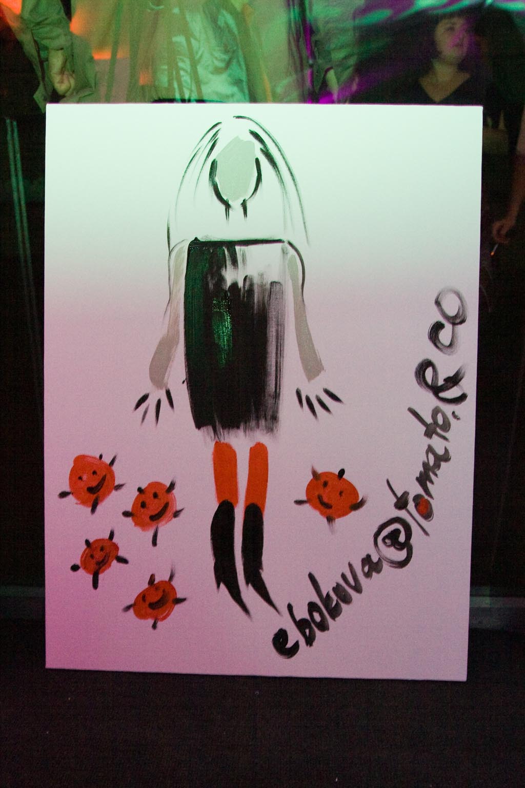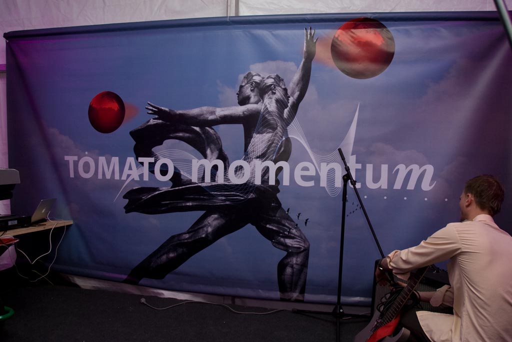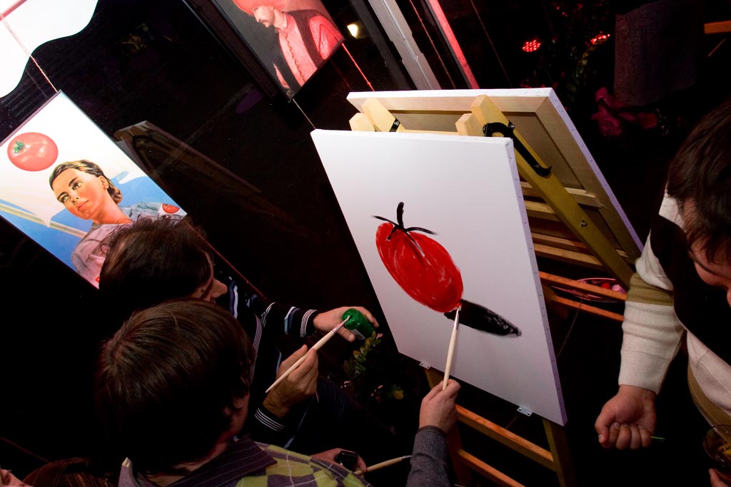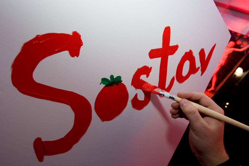 Коллектив Томато Momentum подошел к презентации созидательно, дав возможность всем гостям излить свои творческие порывы на холсте красной, зеленой и черной красками. Понятно, что сюжетами работ стали томаты, а главным жюри - собравшаяся публика. Организаторы пообещали сохранить произведения на память, а потому в своем творении Sostav.ru графически сроднился с главным символом праздника.