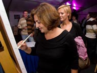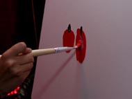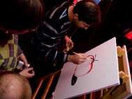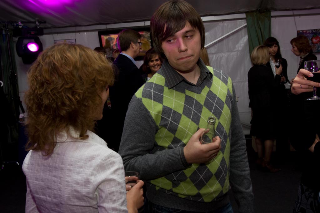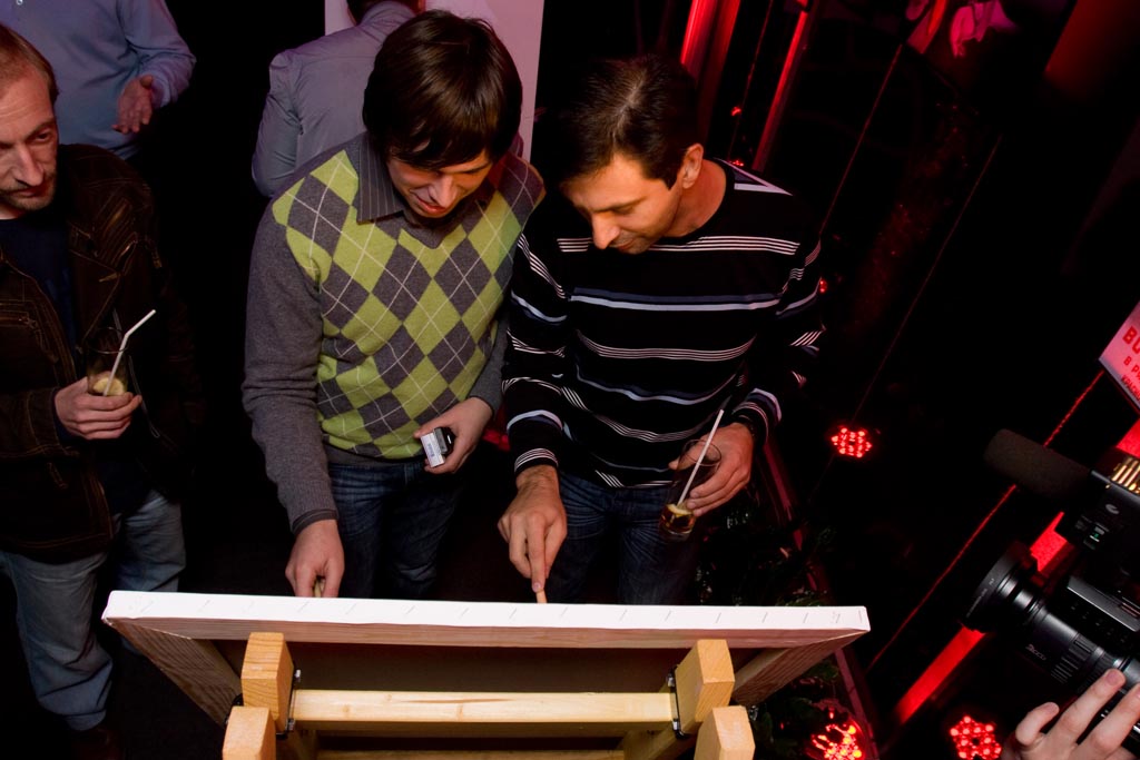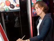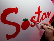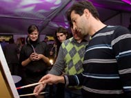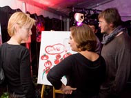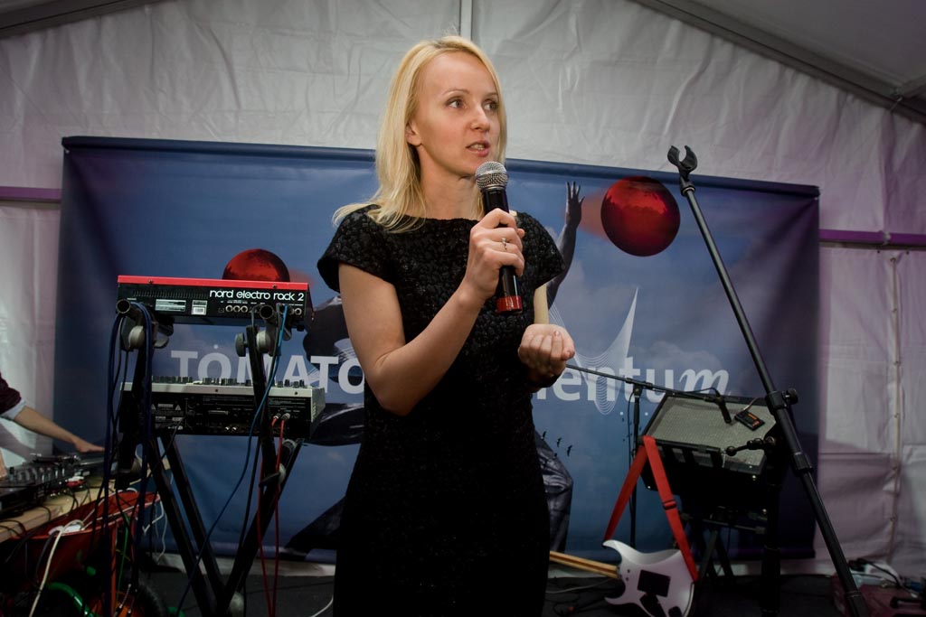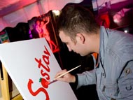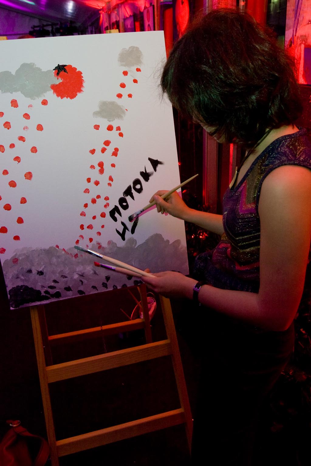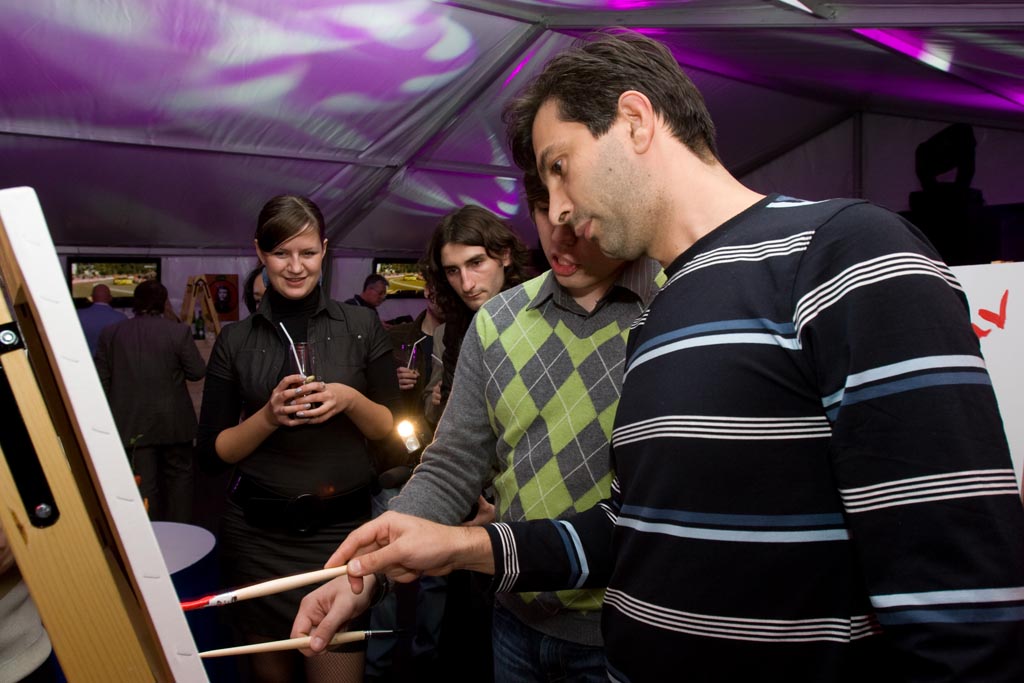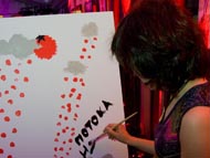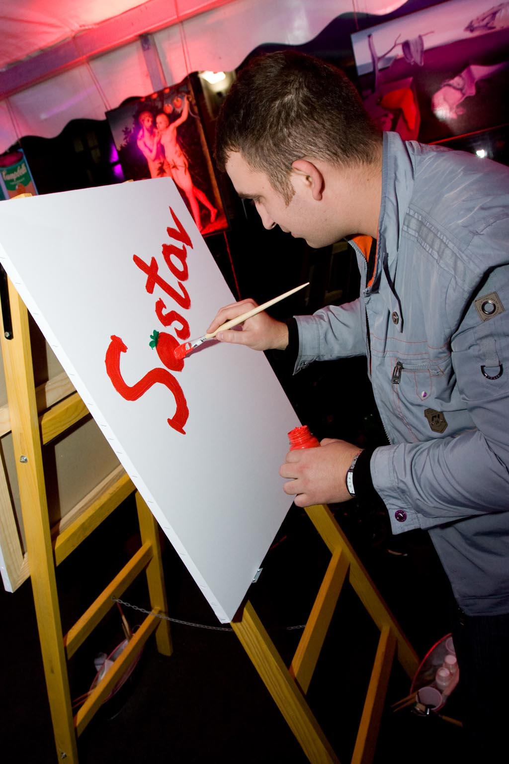 Коллектив Томато Momentum подошел к презентации созидательно, дав возможность всем гостям излить свои творческие порывы на холсте красной, зеленой и черной красками. Понятно, что сюжетами работ стали томаты, а главным жюри - собравшаяся публика. Организаторы пообещали сохранить произведения на память, а потому в своем творении Sostav.ru графически сроднился с главным символом праздника.