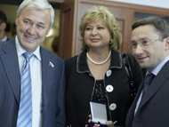 Президент Ассоциации "Россия" Анатолий Аксаков, 1-й Зам. Председателя Правления банка "Агропромкредит" Светлана Степановна ИВАНОВА и Председатель Правления банка "Агропромкредит" Василий Александрович КОРНЕВ