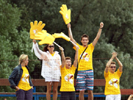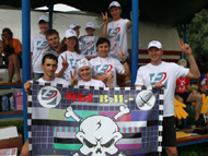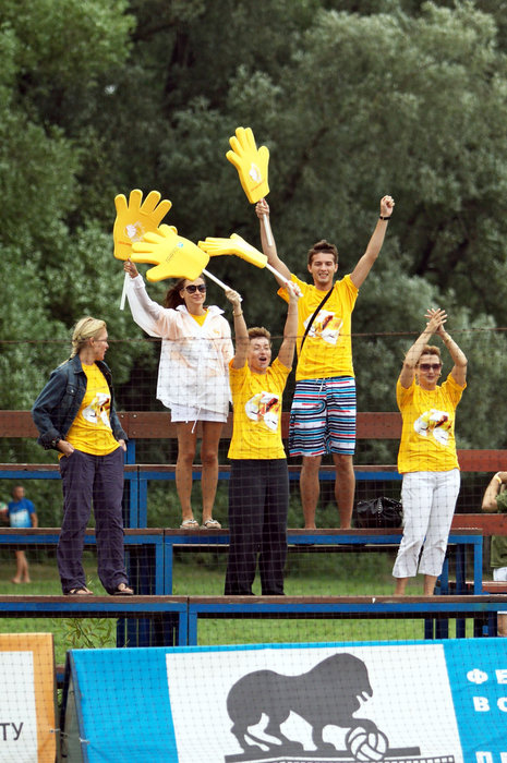Настоящее шоу устроили на трибунах болельщики. Стоит отметить прекрасную "пиратскую" униформу болельщиков команды Stek Group, которые выделялись на трибунах треуголками и тельняшками своей фирменной цветовой гаммы, оригинальные футболки группы поддержки "Яндекса", на спине у которых было написано "Я не ваша целевая аудитория", а на груди - "Я нерепрезентативен", желтую униформу игроков Terminal design с логотипом, размещенным чуть ниже спины. Порадовала команда болельщиков "Видеоинтернешнл - Санкт-Петербург" - они прихватили с собой на турнир заранее подготовленные плакаты с надписями "Влад и Петя круче тучи, наш противник щас получит!", не забывая громко и дружно скандировать свои "кричалки". Пиратская тематика была отражена и на их баннере - череп с перекрещенными костями и надпись "Мы - В.И. пираты" устрашал противников. Набор "кричалок", забавные плакаты, звонкие голоса и изобретательность болельщиков "Видео Интернешнл", которые соорудили целую стену из выданных организаторами "фирменных лап" помогли команде стать лучшей среди групп поддержки, не променявших волейбольный турнир на дачу или шезлонг в Комарово. Вся команда получила билеты на любой фильм т сети "Кронвек Синема".