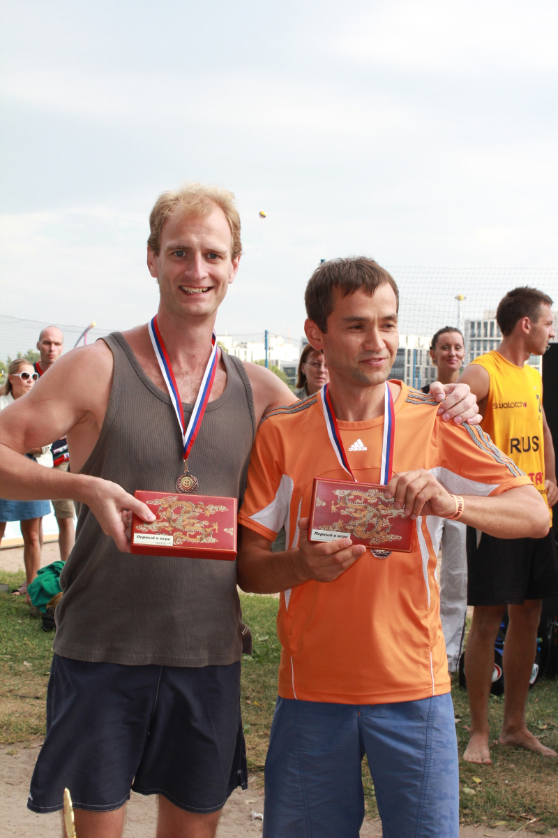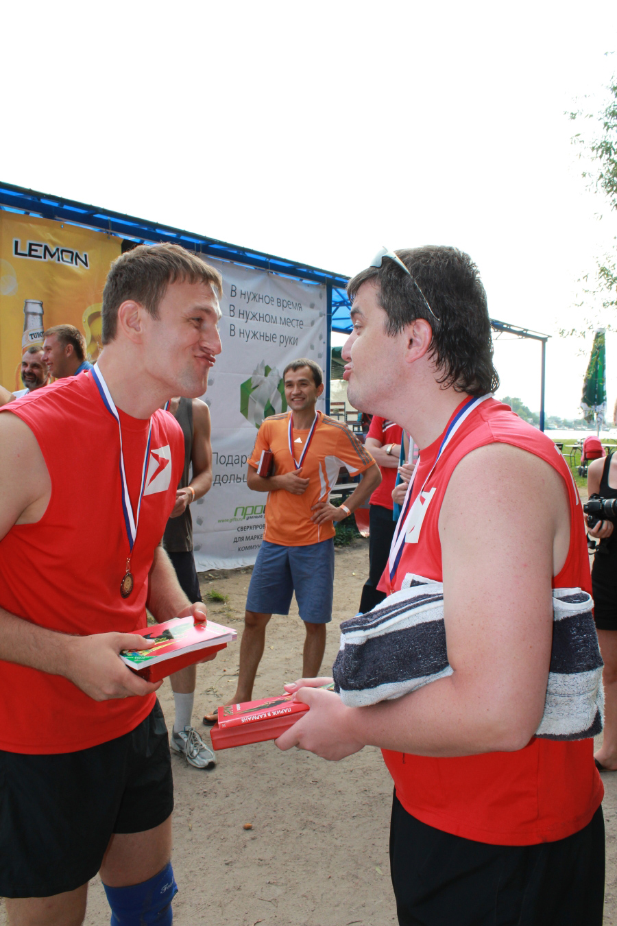 Тяжелее всех пришлось игрокам, выступающим сразу в двух кубках - "Кубке рекламы" и "Кубке директоров". Порой их выход на площадку объявлялся в тот момент, когда они еще играли в другом кубке. Алексею Куприянову, Антону Кудрявцеву, Борису Григорьеву, Леониду Яковлеву и, браво! - единственной даме, попавшей в финал, - Анне Косульниковой пришлось вынести двойную нагрузку, перебегая с одной площадки на другую, сражаясь сначала с одной командой, и потом сразу - с другой. Самым зрелищным стал финал, в котором уставшие, но не сдавшиеся гендиры боролись в паре с профессиональными волейболистками. Ближе к концу игры увеличивалось количество ошибок, девушки-волейболистки распекали своих подчиненных директоров, которые падали ниц к их ногам (кто-то от усталости, кто-то - вымаливая прощения за ошибку) и пытались загладить свою вину (иногда - буквально, поглаживая руку партнерши или жалобно оправдываясь).