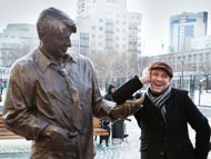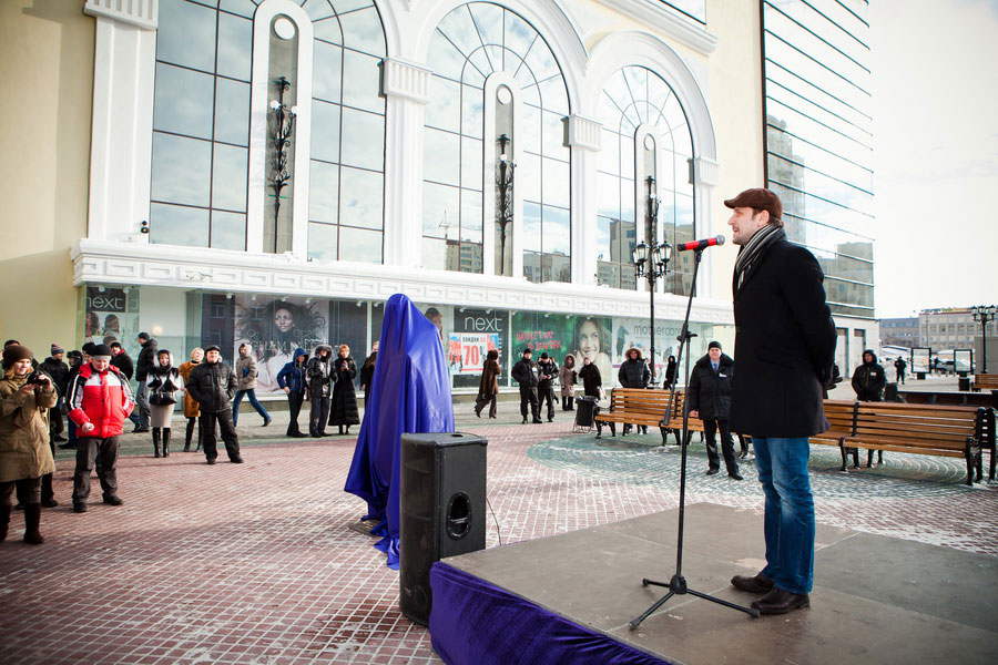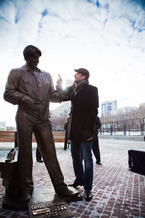 Монументальный образ героя ситкома "Счастливы вместе", который уже несколько лет с успехом идет на телеканале ТНТ, в начале февраля был установлен в самом центре Екатеринбурга на пешеходной улице Вайнера. Именно там, недалеко от торгово-развлекательного центра "Гринвич", согласно третьему сезону сериала и находится обувной магазин, в котором трудится Гена Букин.