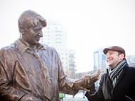 Актера Виктора Логинова, исполняющего роль Гены Букина, такое выражение народной любви немного смущает. "На самом деле, открытие скульптуры Гены Букина в центре Екатеринбурга, лично для меня событие необычное. Но считаю, что это изваяние принадлежит не столько моему персонажу, сколько всем тем людям, которые работают над сериалом "Счастливы вместе".