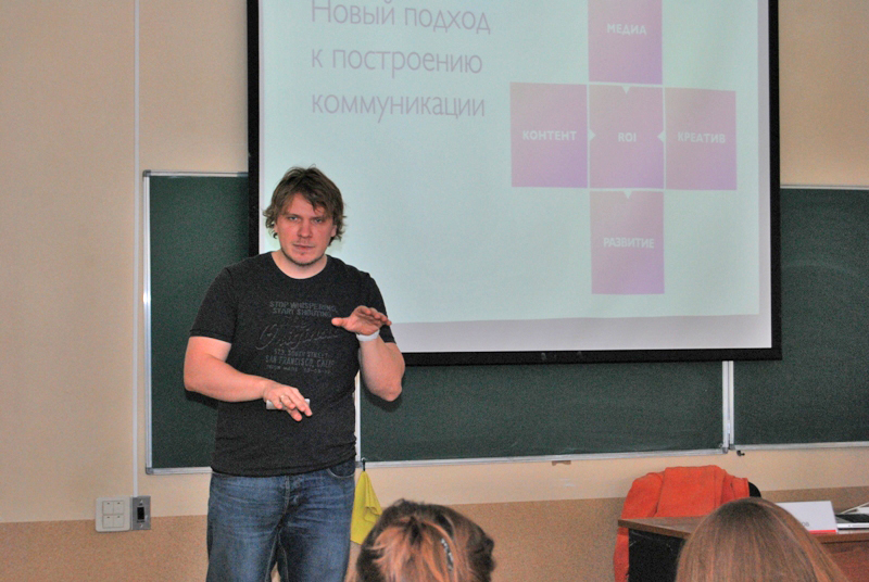 Эти диагнозы и прогнозы были подкреплены точным языком актуальных цифр из самых «первых рук» рынка исследований: перед студентами и молодыми специалистами с анализом новейших тенденций выступил Михаил Райбман, директор по работе с рекламными агентствами компании TNS Россия.