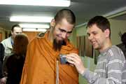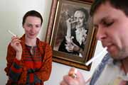 Позже любой гость выставки имел уникальную возможность почувствовать себя мастером портретной фотографии. Для этого было установлено специальное оборудование, профессиональный свет, принесено море театральной атрибутики для создания образов. Помогал дельными советами сам Максим. От участников не было отбоя, как, в принципе, и от моделей. На фоне драпировок строгие янычары сменяли соблазнительных пираток, а они, в свою очередь, освобождали пространство перед объективом для непонятных волосатых существ, женщин-сверчков с Урана, и теток из Бразилии, где много-много диких обезьян.