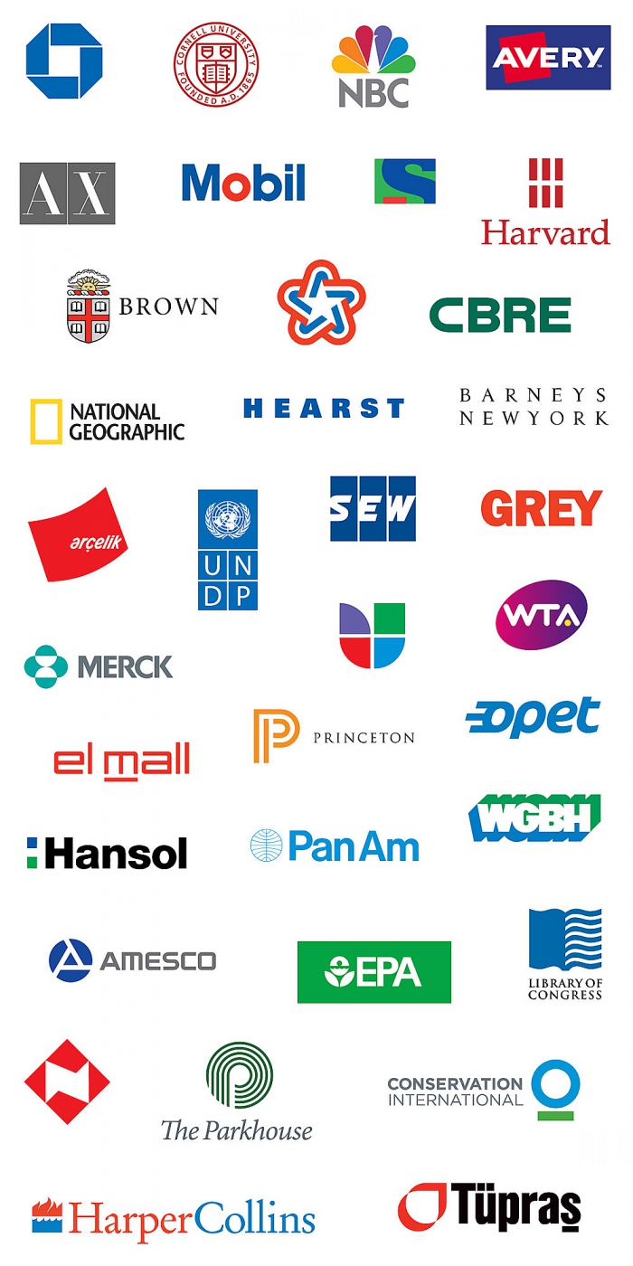 В портфолио мастера много известных и очень разноплановых решений. Логотип National Geographic создан в «швейцарском стиле»: с аккуратной и точной типографикой и построенными по сетке знаками, при этом есть совершенно оторванные творческие решения, как Tulip Films или Public Spaces NYC, которые совершенно рукотворны, экспрессивны и лично меня отсылают к решениям в стиле польских плакатов. А есть решение JFK Library, которое сейчас смотрелось бы по-хипстерски актуально.