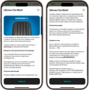 Баннер в приложении, характеристика в карточке автомобиля и страница описания товара по клику