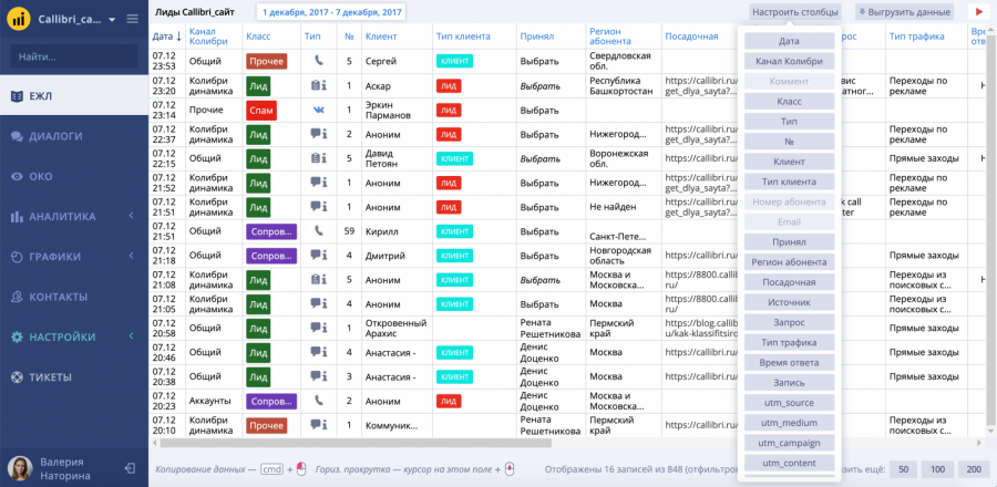 Callibri предлагает три сервиса: «Мультитрекинг», «Мульчат» и сквозную аналитику. «Мультитрекинг» позволяет отслеживать звонки и анализировать речь, отслеживать рассылки, интегрироваться с метриками, рассчитывать стоимость лидов. «Мультичат» позволяет снабдить сайт онлайн-консультантом, сервисом обратном звонка, квизами и персонализированным контентом. Здесь можно сделать единый журнал лидов для всех каналов коммуникации бренда. Сквозная аналитика отслеживает конверсия, CPO, ROI, ROAS, ДРР и другие показатели, а также позволяет интегрироваться с рекламными системами и CRM.