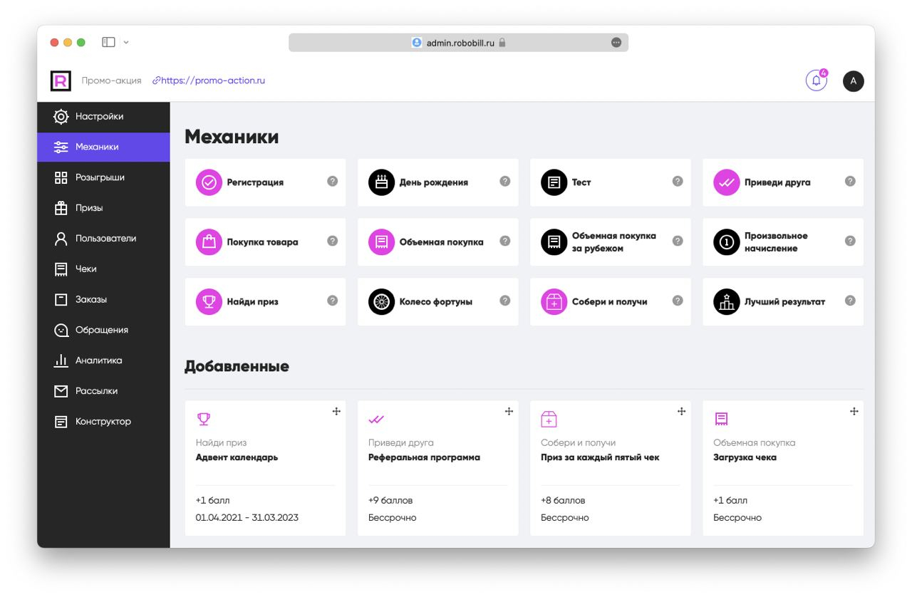 Начну с нашей платформы, потому что знаком с ней лучше, чем с другими. Она позволяет полностью настроить новую кампанию и создать для неё сайт, что особенно удобно для промоакций с чеками. Сами чеки при этом проверяются автоматически в ФНС, техподдержка реализована через собственный хелпдеск. Сайты верстаются в простом конструкторе.