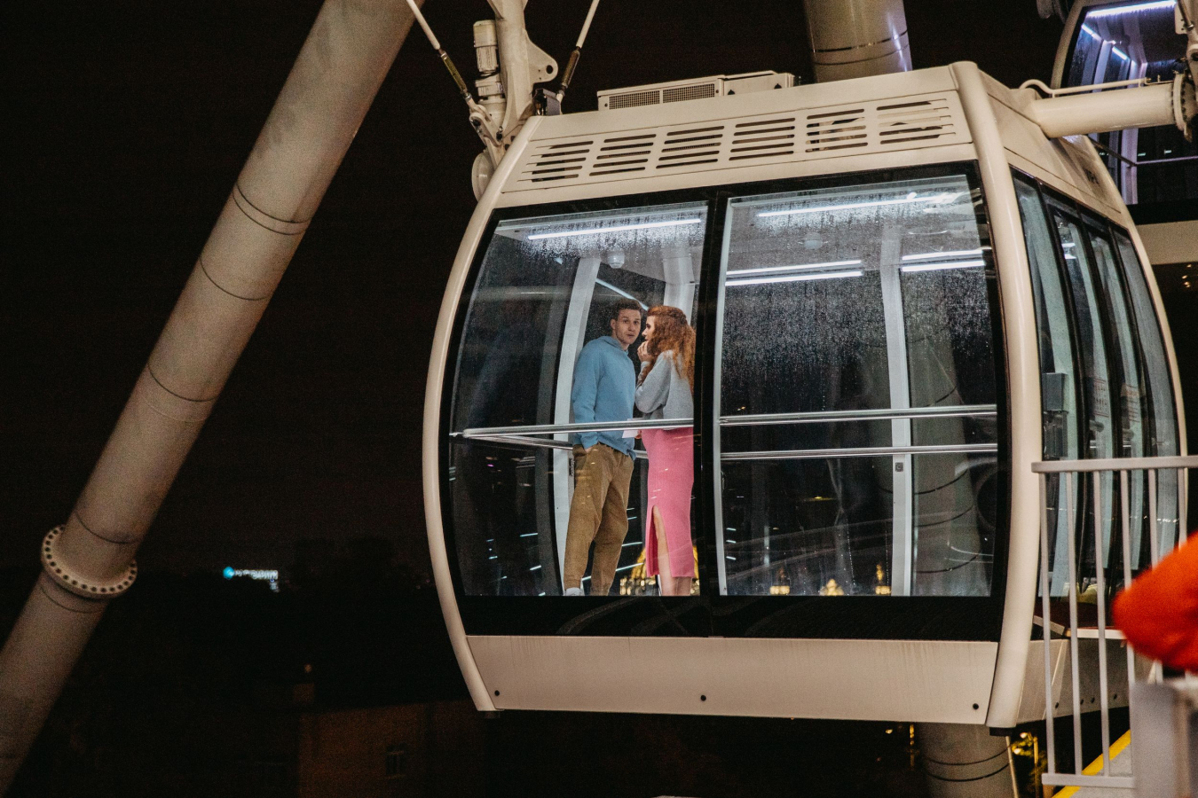 Первый съёмочный день пришёлся на день технического прогона, а второй проходил уже при действующем колесе обозрения, на котором катались посетители. Изначально съёмка шла параллельно с техническим тестированием и освоением объекта: специалисты колеса проверяли систему климат-контроля, скорость вращения и другие инженерные нюансы.