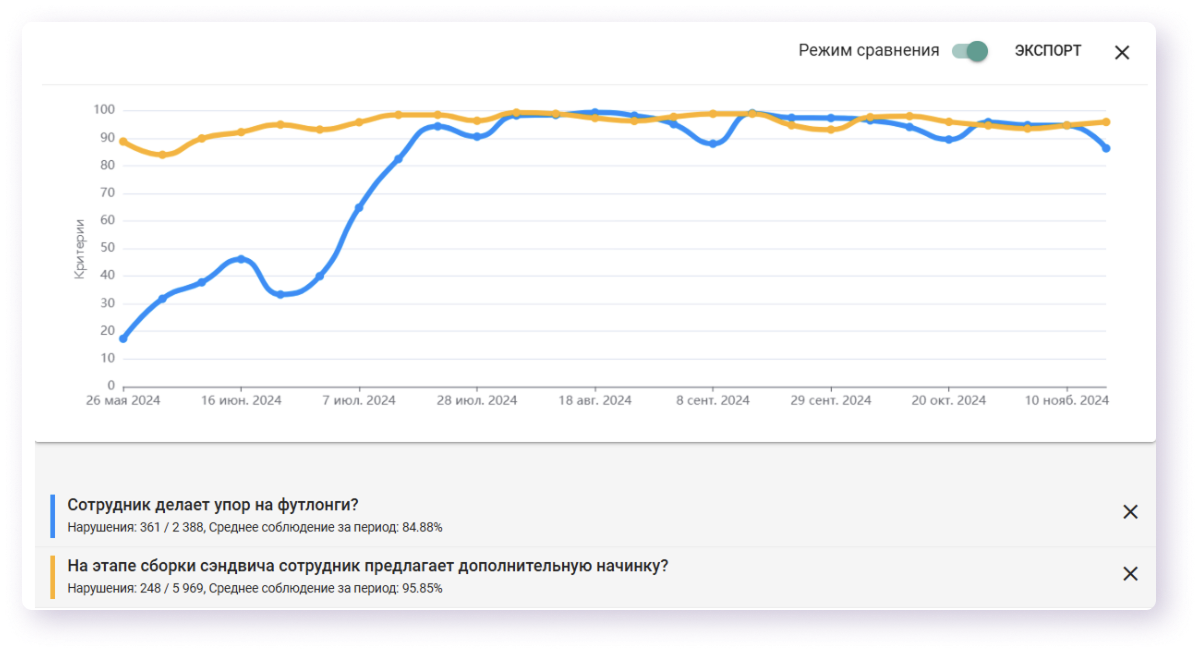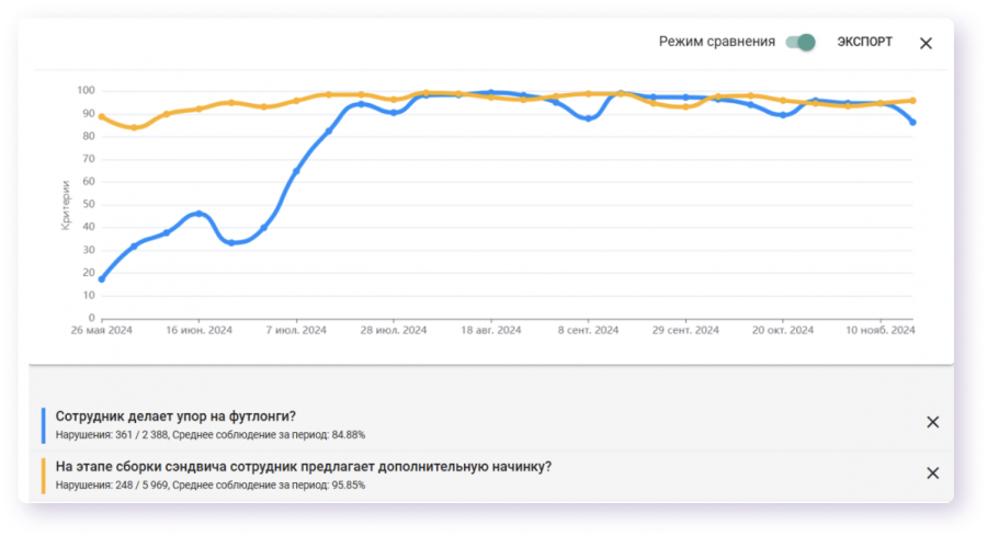 Сегодня две трети — линейных сотрудников стабильно демонстрируют соблюдение стандартов на уровне 99%. Управляющие отмечают, что ключ к таким результатам — симбиоз технологий и продуманной системы мотивации.