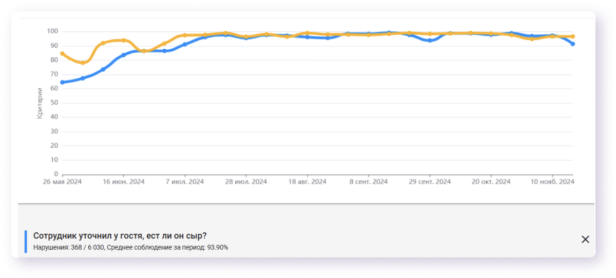 SteadyControl оцифровала свыше 40 бизнес-процессов в четырех ресторанах партнеров. В зоны юнитов установили специализированное оборудование для качественного сбора данных о работе персонала и визитах гостей. Алгоритмы ИИ стали автоматически изучать соблюдение стандартов и качество обслуживания, формируя ежедневную статистику. Таким образом руководство получило объективную картину эффективности на каждой локации, а линейные сотрудники — справедливую и прозрачную оценку своей работы.