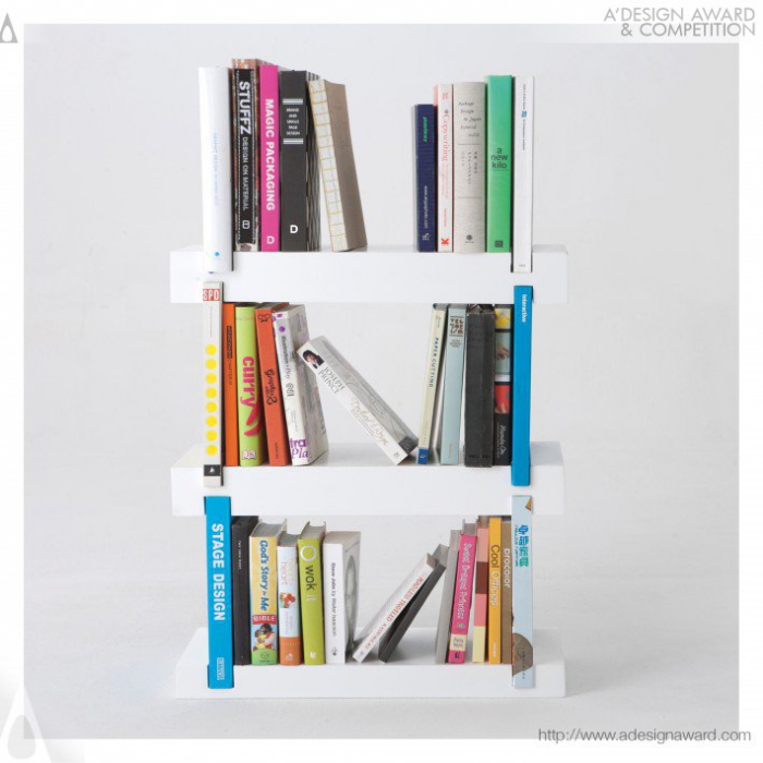 Еще один необычный проект, созданный для совершенствования домашнего интерьера удостоился награды. Это минималистичная книжная полка китайского дизайнера Chan Hwee Chong; она дает возможность достраивать новые этажи с помощью самих книг, для которых в корпусе полки предусмотрены специальные слоты.