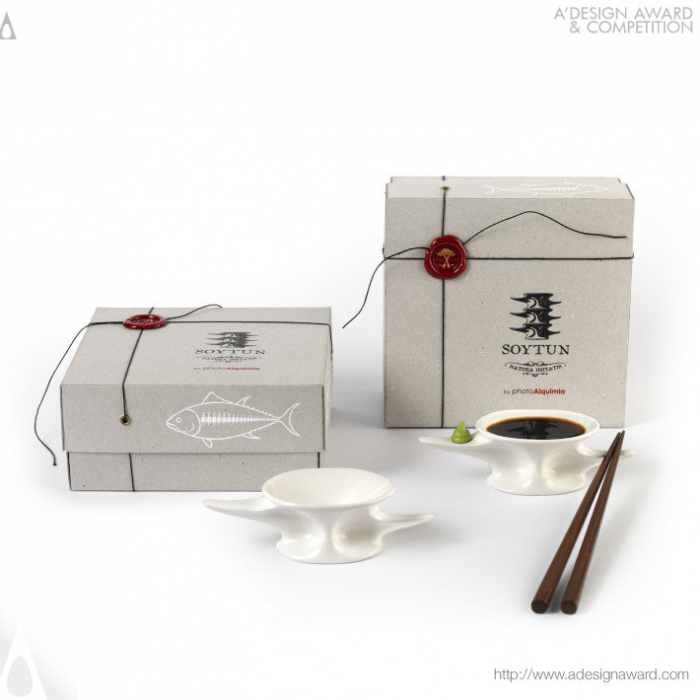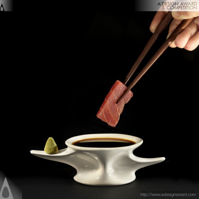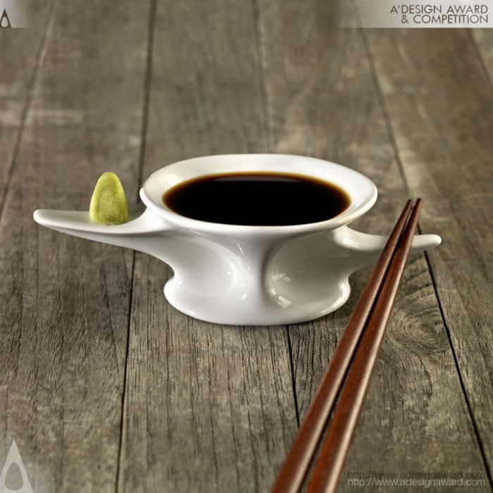 Дуэт дизайнеров Carlos Jimenez Perez & Pilar Balsalobre разработал интересный проект "Soytun" - специальную чашу для соуса к сырой рыбе. Главным ее достоинством жюри назвали не привлекательный дизайн, а функциональность; у посуды есть две ручки, на которые можно складывать палочки для суши и васаби.