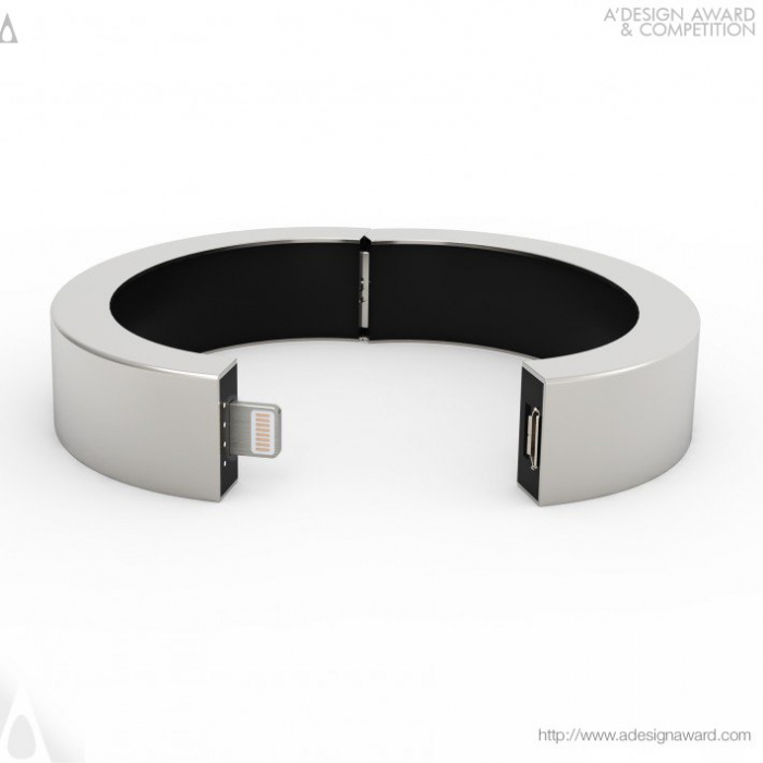 За свою технологичность получил золотую награду инновационный проект студии Q Designs. Специалисты разработали браслет, который сможет зарядить iPhone своего обладателя. Металлический браслет представлен в двух цветах - серебристом и золотом.