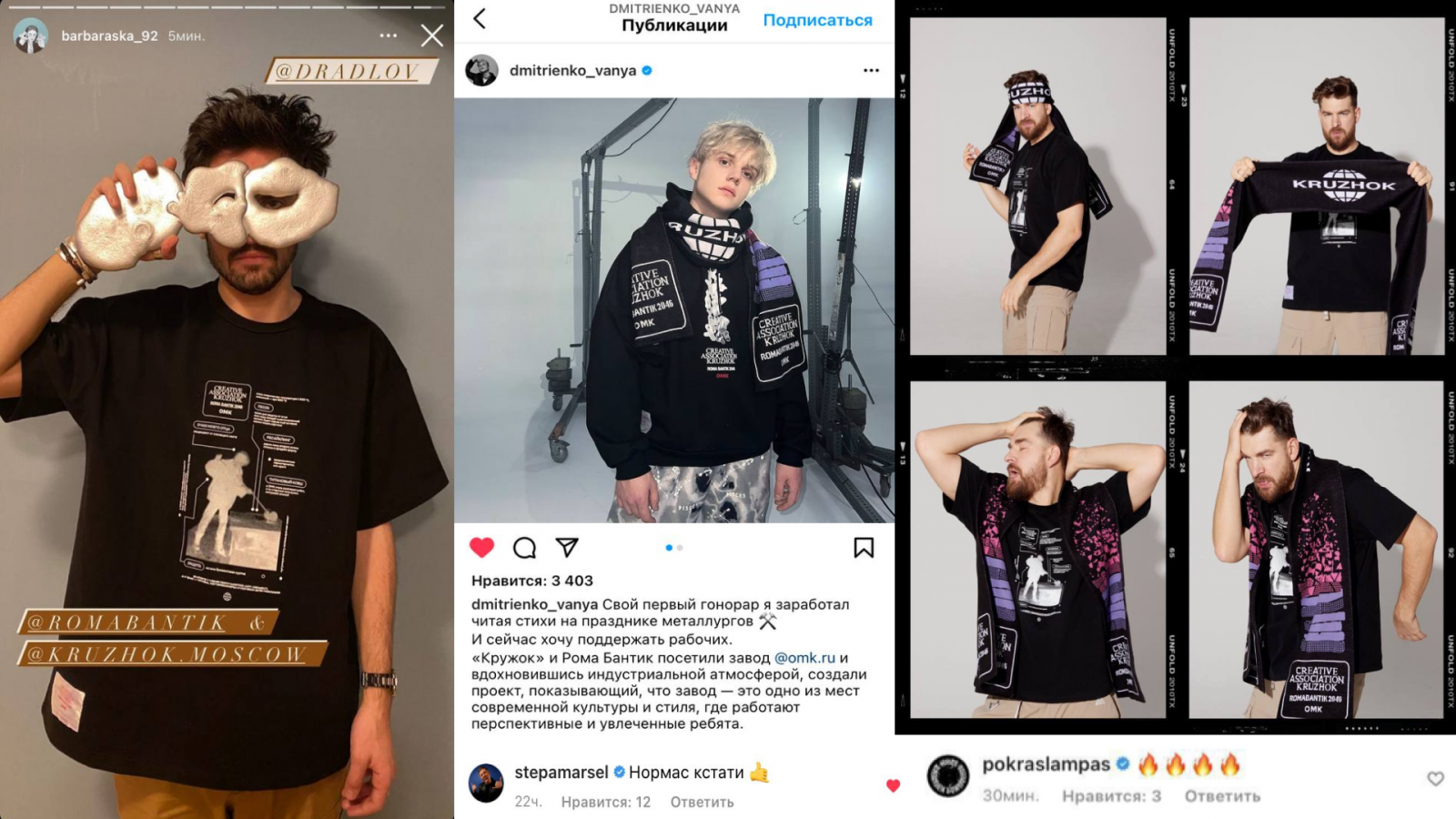 Стали изучать, чем увлекаются молодые люди. Популярное средство самовыражения — одежда. Так мы поняли, что ОМК нужна коллаборация. Идеальную совместимость нашли с брендом одежды «Кружок», в коллекциях которого переосмыслены социальные явления, и художником Ромой Бантиком из заводской семьи, который создает арт-объекты из металла.