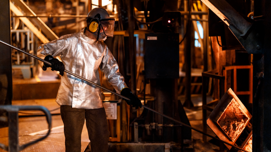 Сотрудники «Кружка» вместе с художником отправились на завод ОМК в Выксе, вдохновились красотой металла, поговорили с рабочими. Итогом стала капсула одежды, в которой каждая вещь посвящена отдельному этапу производства. Шарф — этапу дробления лома, футболка — плавке, а худи — работе с итоговой продукцией.
