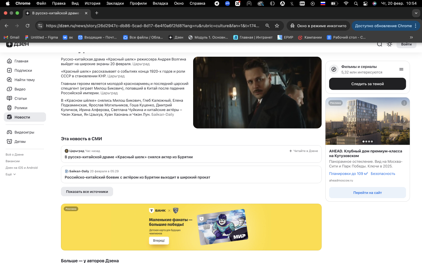 Главное преимущество «Дзена» в тематических проектах заключается в том, что алгоритмы ML позволяют нам точно определить тематику каждого материала. Так, в проекте с «Т-Банком» мы показывали сообщения бренда тем, кто в этот период читал материалы о хоккее и спорте. Коммуникация попадала в живой интерес аудитории, и за счет этого спецпроект работал максимально эффективно. Сегодня в «Дзене» более 30 крупных тематик — от экономики и технологий до авто, кино и путешествий. Это дает возможность создавать запоминающиеся и эффективные проекты под задачи рекламодателей практически в любой категории.