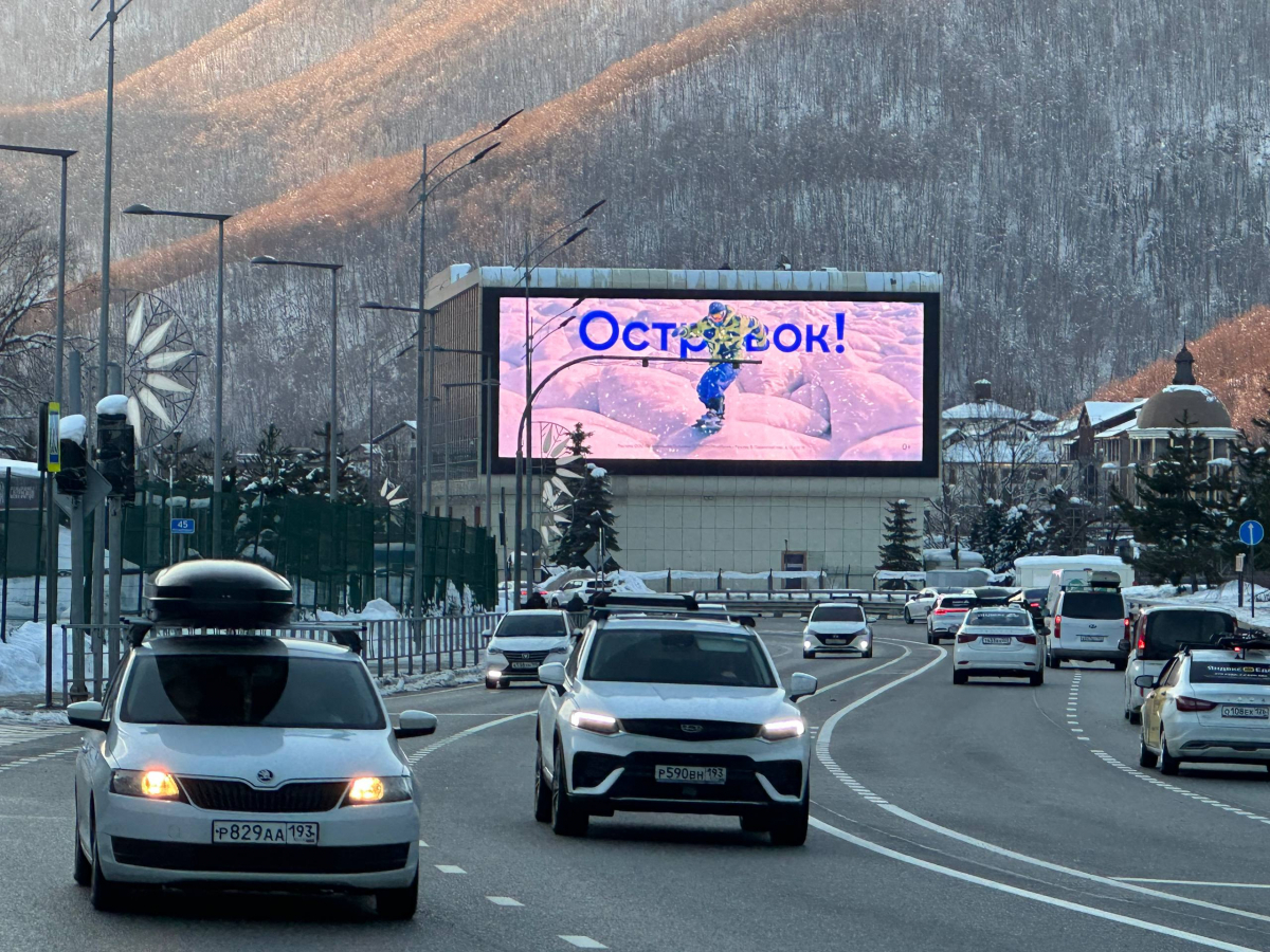 «Островок» решил не ограничиваться баннерами и буквально встроился в зимний отдых. Сервис забрендировал инфраструктуру Шерегеша — от турникетов до кресел подъемников — и усилил присутствие медиафасадами в аэропортах и на курортах. Производство рекламных материалов и брендирование горнолыжных объектов провело агентство