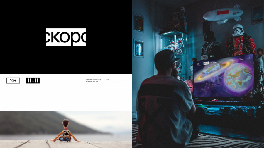 Большое внимание уделили верстке. Если раньше визуальные элементы были хаотично разбросаны по разным углам кадра, то теперь они сфокусированы в верхнем блоке, что создает иллюзию шапки сайта. Внизу экрана разместили плашки с информацией — они работают как поп-ап уведомления. У канала небольшой продакшн эфира, поэтому в ONY разработали шаблоны, которые можно легко добавлять в дизайн сетки вещания.