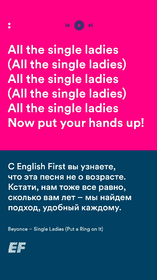 В идее кампании «Владею языком — владею ситуацией» заложена очень понятная мысль: если я не говорю на английском, но оказываюсь в разговорной ситуации с носителем языка, я теряю контроль над происходящим и все понимаю не так. Для аудитории English First этот барьер является сильной мотивацией начать изучение английского языка.