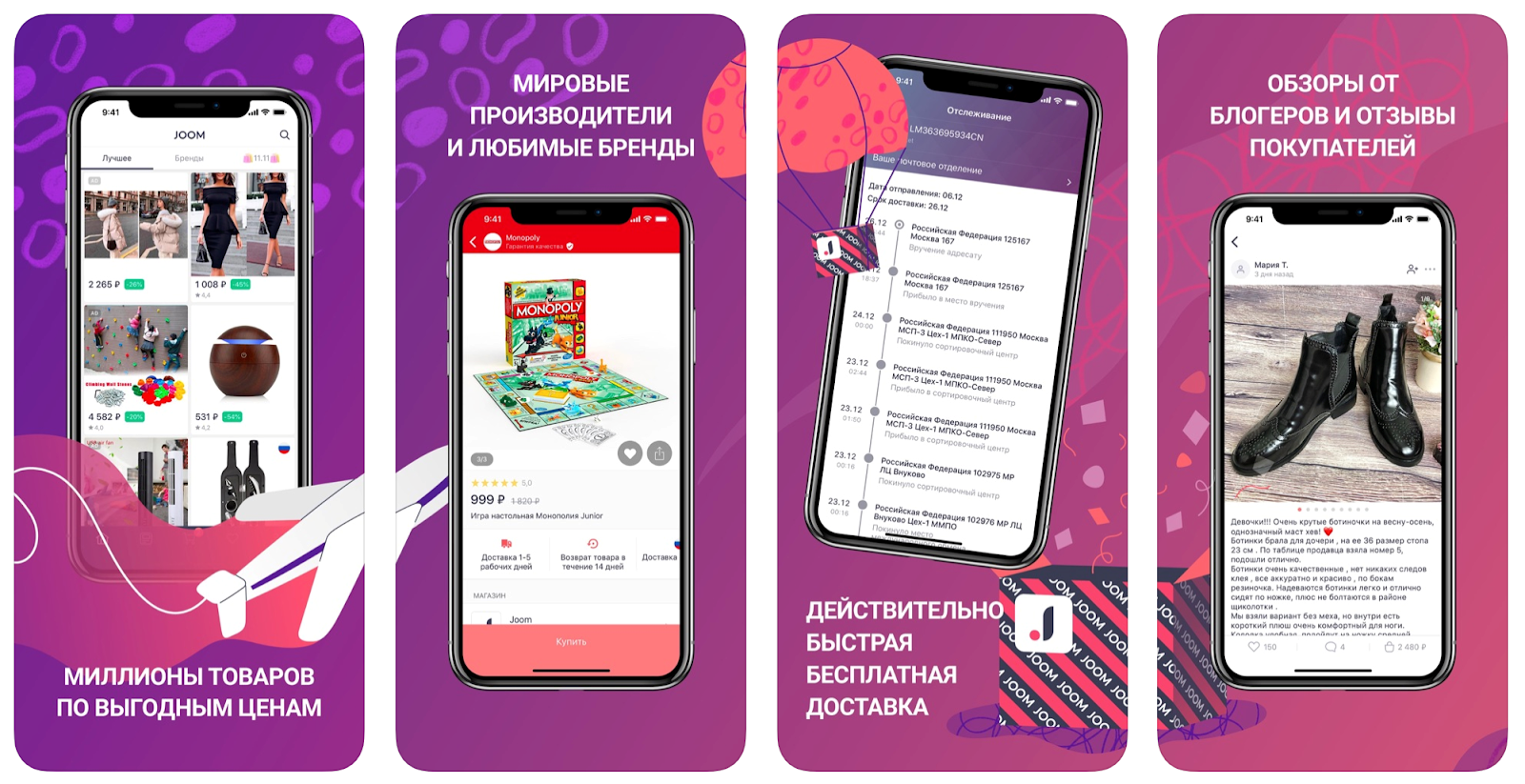 Joom появился на рынке в 2016 году и быстро обратил на себя внимание широким ассортиментом продукции: от одежды и косметики до канцтоваров и предметов интерьера. Привлекательной была и ценовая политика. На платформе постоянно действуют скидки на все группы товаров, а существенным плюсом магазина является бесплатная доставка. На данный момент компания является одной из самых популярных в мире электронных площадок по продаже товаров из Японии, Кореи и Китая — с ежемесячной аудиторией более 25 миллионов человек.