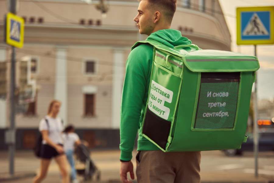 Delivery Club выпустил серию караоке-рюкзаков, которые играют «Третье сентября». Курьеры с такими рюкзаками будут ходить «по бульварам Москвы» (где «пролетел желтый лист», ну вы поняли).