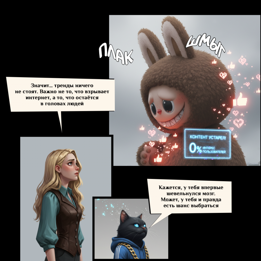 Все представленные комиксы доступны по ссылке — выбирайте фаворитов и погружайтесь в творческие эксперименты участников. Проекты созданы с использованием нейросетевых инструментов и современных графических программ, которые позволили командам показать возможности искусственного интеллекта и собственное мастерство.