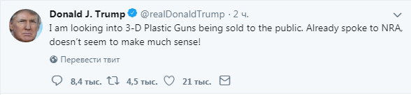 По данным habr, в какой-то момент министерство обороны США и Госдеп таки узаконоли 3D-модели оружия. Несколько дней их распространение было легальным. Вероятно, прошлогодняя трагедия в массачусетской школе, когда 20-летний Адам Лэнза расстрелял 12 детей и 6 взрослых, ускорила реализацию инициатив Уилсона по обходу федеральных запретов относительно оборота оружия.
