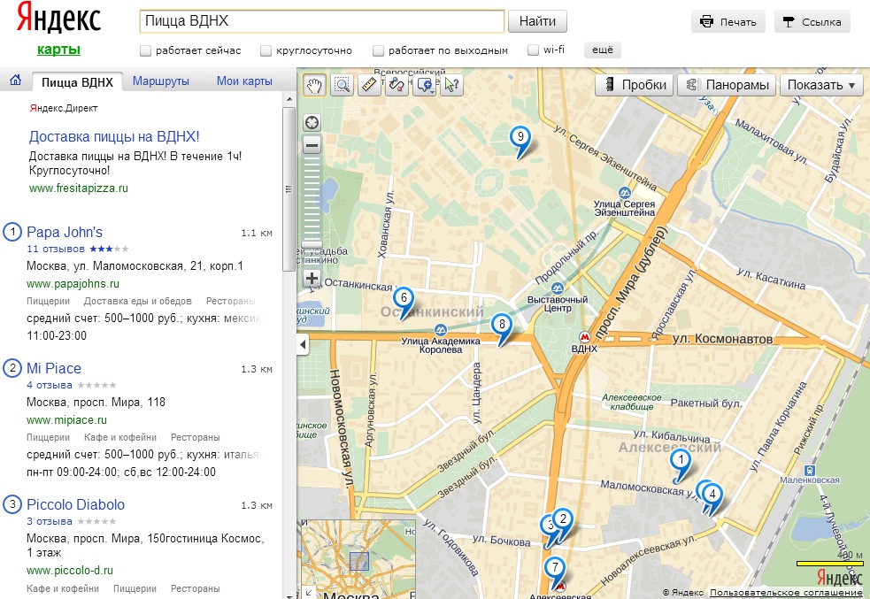 Яндекс.Справочник – это база организаций, данные из которой показываются на поисковых сервисах Яндекса (учитывая географическое положение или географический район поиска), в ответ на запрос пользователя.