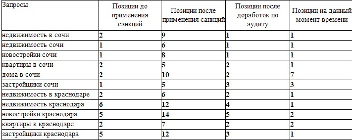Пример: к нам обратился сочинский портал недвижимости за аудитом. На сайте перестали индексироваться новые страницы и частично выпали продвигаемые, но, самое главное, просели позиции по стратегически важным ключевым словам. На сайте было множество причин, по которым это могло произойти.