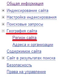 После перехода по вкладке «Регион сайта» отобразится региональная принадлежность ресурса: