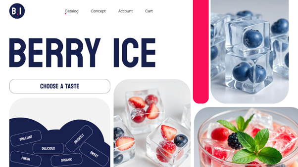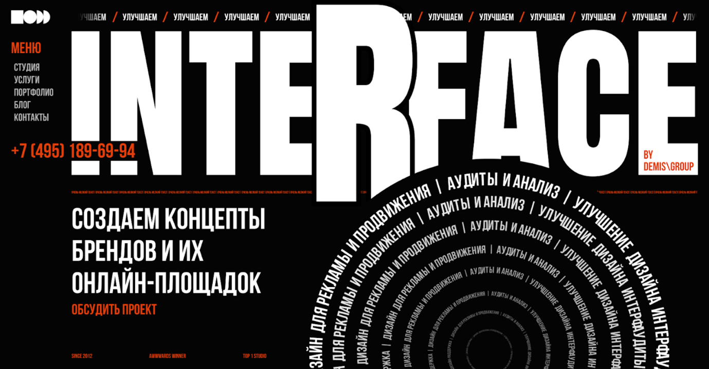 Отличительная особенность данного стиля — использование крупного текста в качестве основного элемента дизайна. Чтобы дизайн не был скучным, используются кастомные акцидентные шрифты, предназначенные для расстановки акцентов и привлечения внимания пользователей. А чтобы сделать дизайн еще более интересным, очень часто, используя данный стиль, добавляют нестандартную сетку. Так, с помощью простых приемов можно создать уникальный, запоминающийся дизайн.