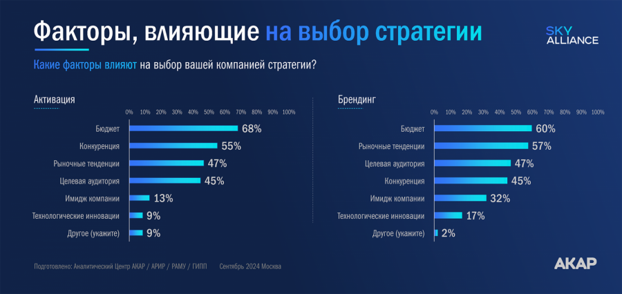 Более 60% компаний — а в малом и среднем бизнесе это порядка 76% — ответили, что больше половины их бюджета уходит на активационный маркетинг, а не на имидж и построение бренда.