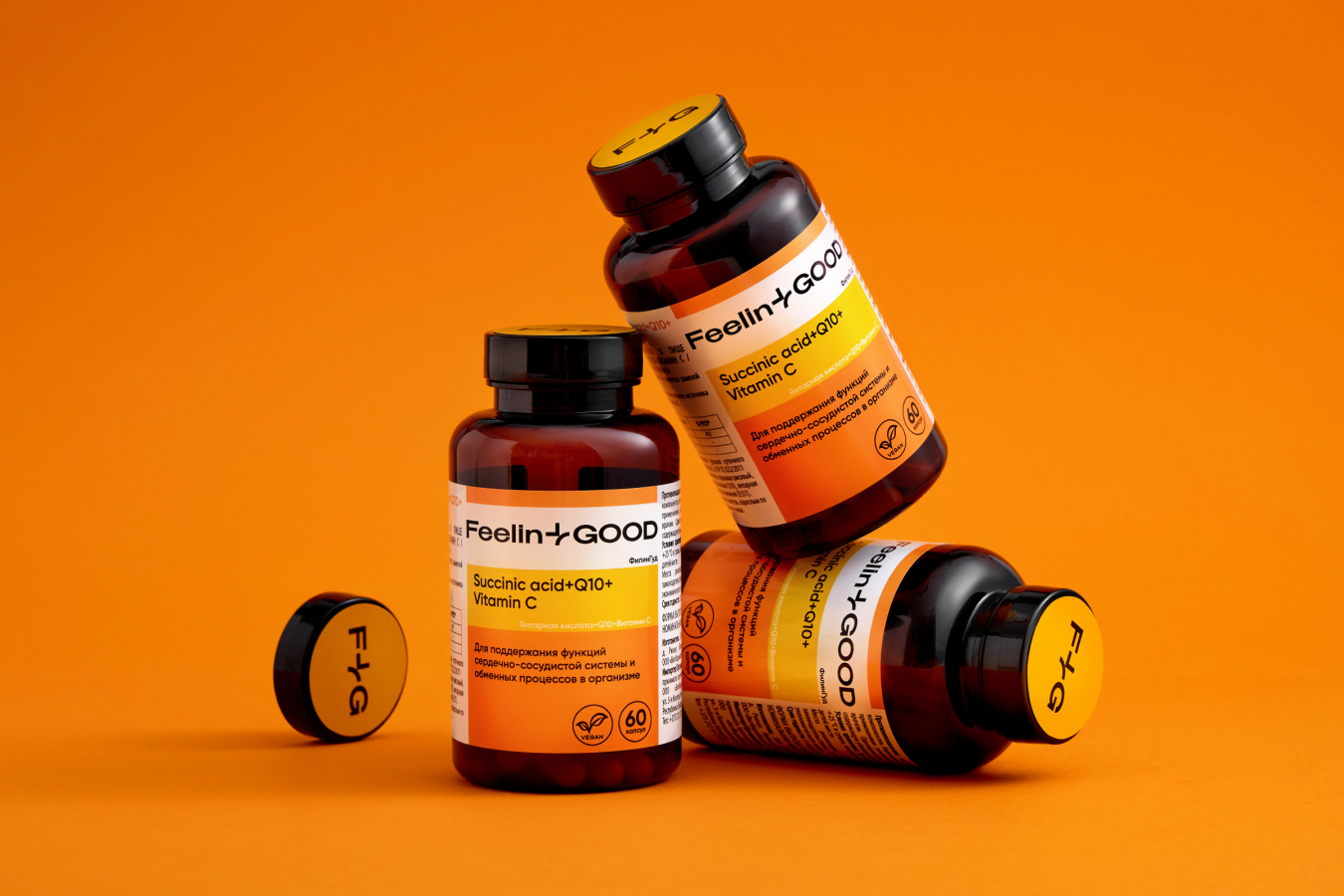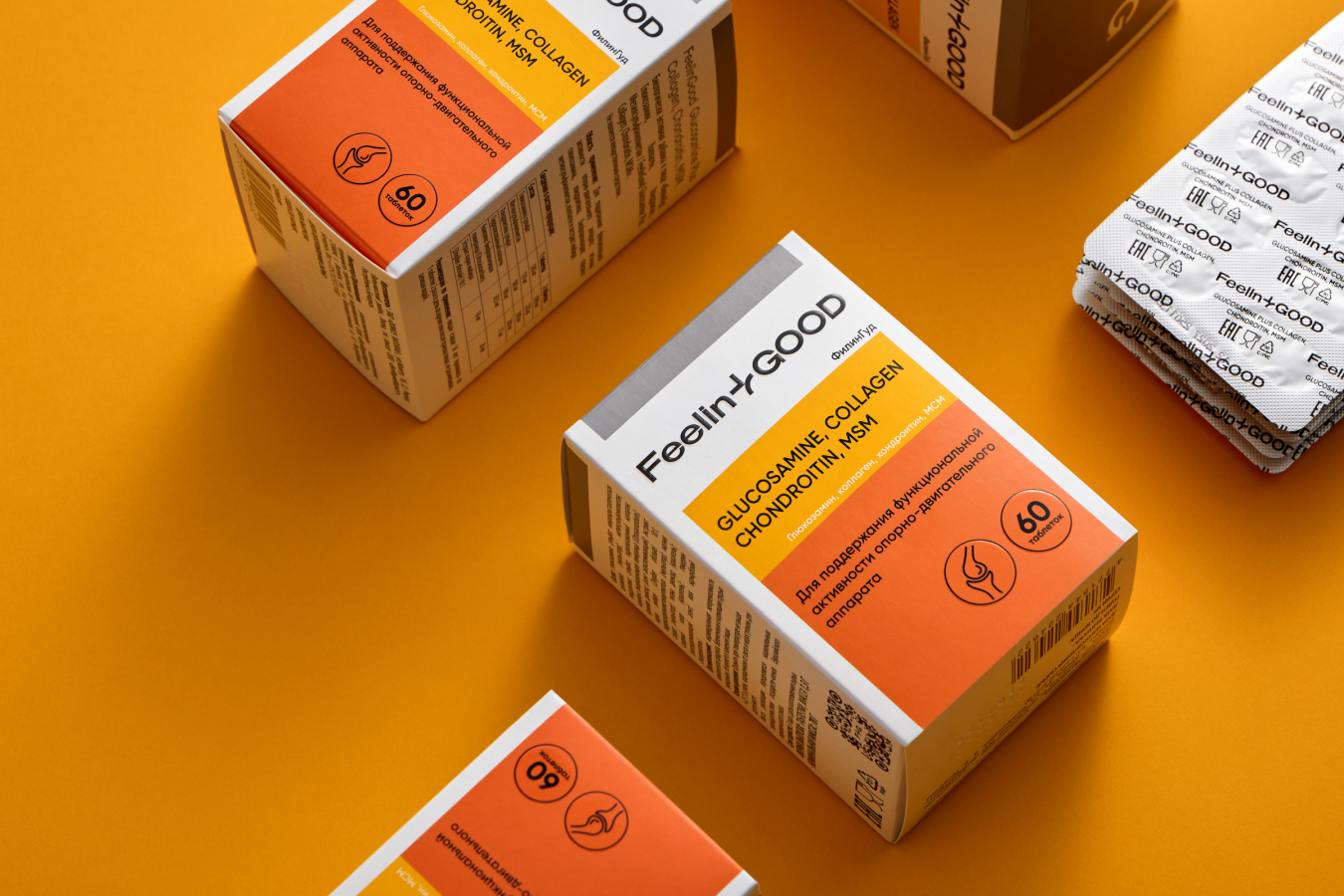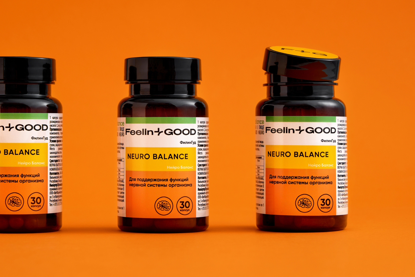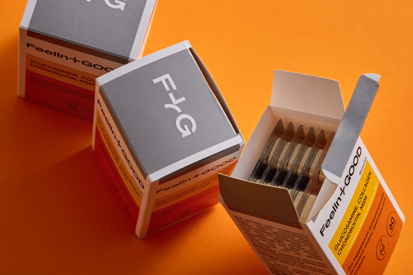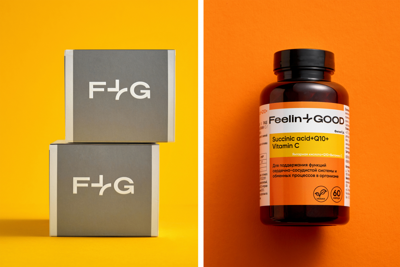 Бренд БАДов FeelinGood получил обновленную упаковку — чистую, минималистичную и жизнеутверждающую. Вместо медицинской строгости — теплый желтый цвет, ясная типографика и понятная структура. Айдентику разработало агентство
