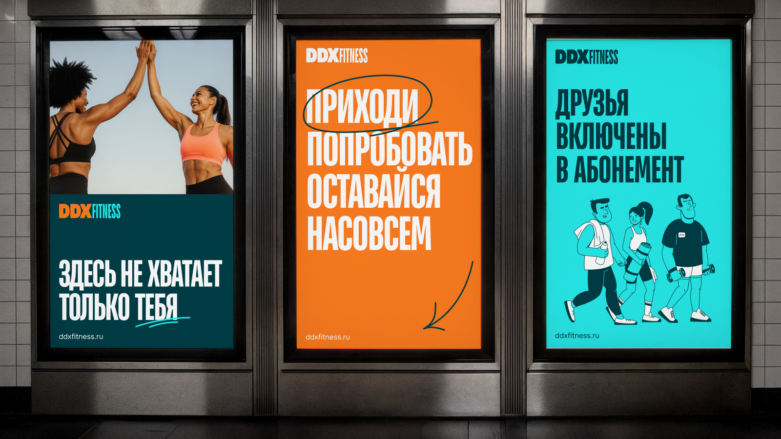 Агентство LINII обновило айдентику DDX Fitness, ориентируясь на «здоровое отношение к тренировкам». Новый логотип и цветовая палитра (бирюзовый, изумрудный, оранжевый) подчеркивают поддерживающую атмосферу и вовлеченность. Рукописные графические элементы и фотостиль с акцентом на естественность создают образ живого сообщества. Разработана гибкая дизайн-система для всех точек контакта с клиентами. Подробнее на Sostav.