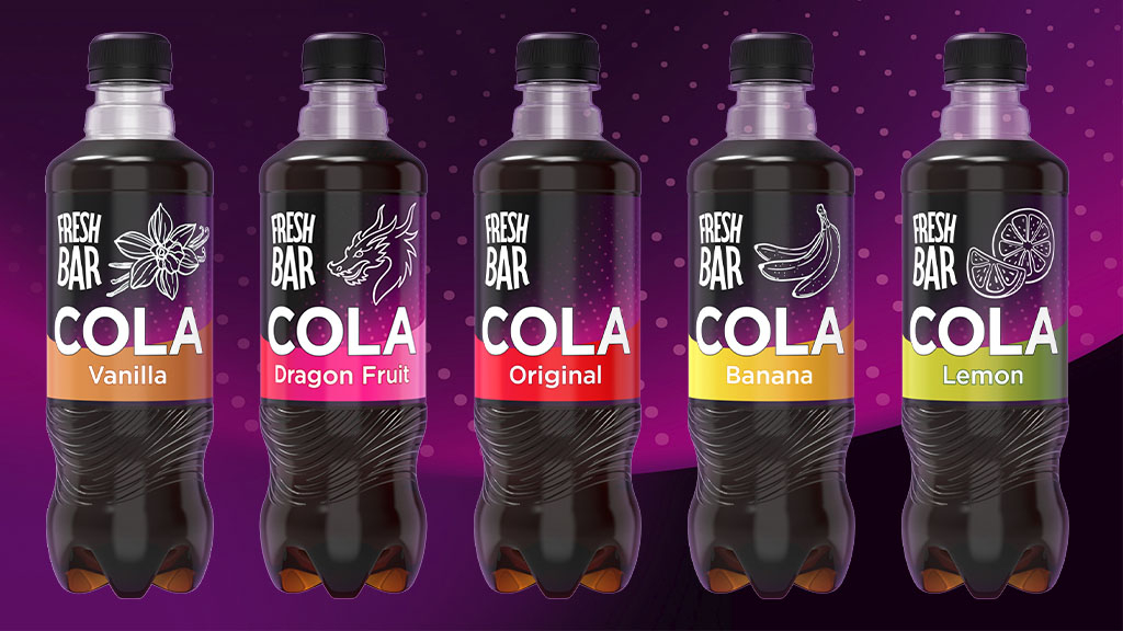 В 2025 году минимализм стал языком, на котором бренды говорят с молодежной аудиторией. Fresh Bar переосмыслил линейку Cola: теперь это яркий, лаконичный дизайн, где каждая деталь по делу. Без фото, с чистой графикой и выразительными символами вкусов — дракон, бананы, цветок ванили. Цветовые градиенты, акцентное лого и тактильная бутылка работают на ощущение современности, и простоты.