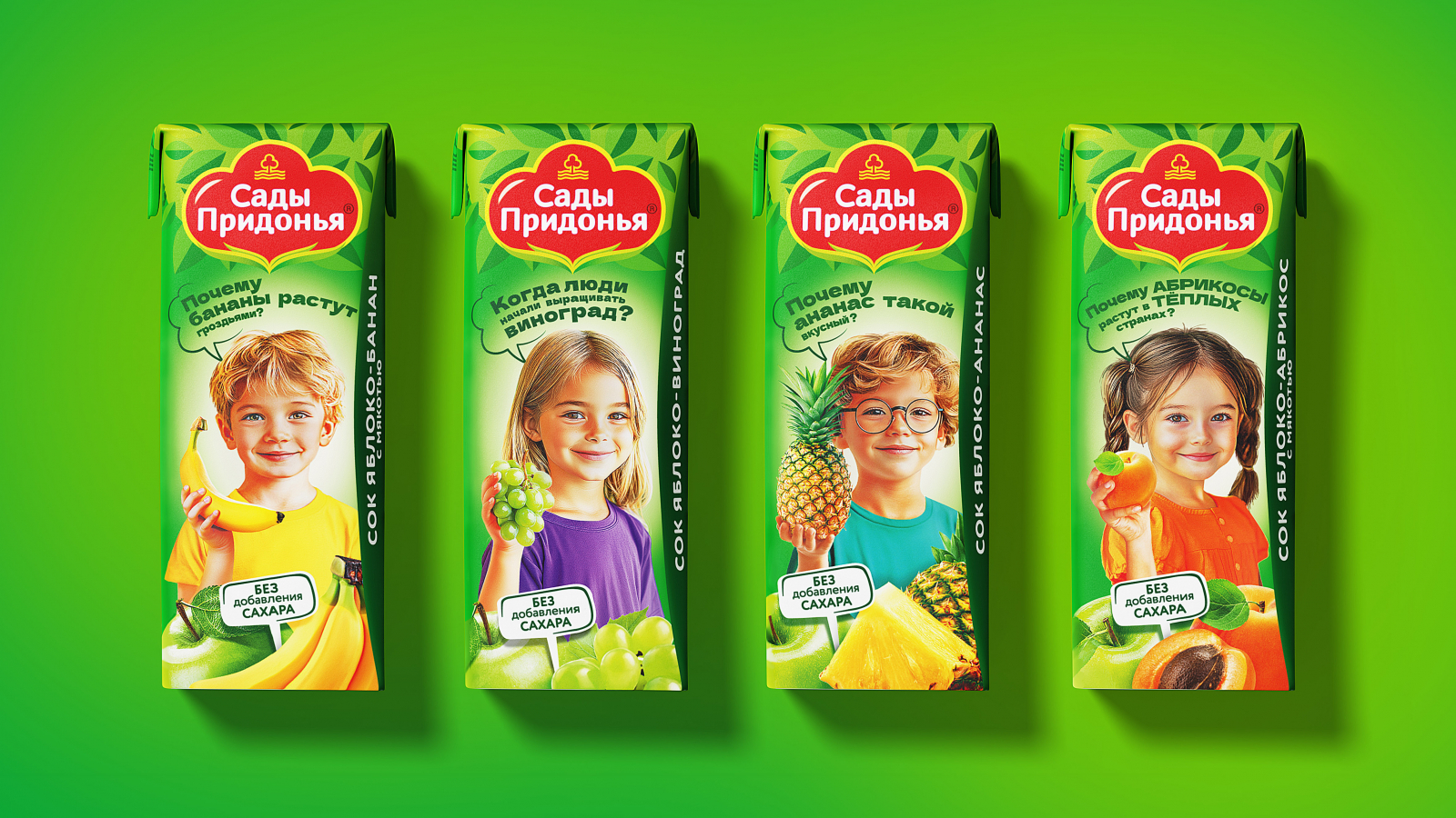 DDVB разработало новый дизайн упаковки 0,2 л для детской линейки соков «Сады Придонья». Обновленный стиль рассчитан на поколение «Альфа»: визуал стал легким и контрастным, убраны лишние детали, на упаковке появились вопросы о продуктах и QR‑код с ответами. Использован ИИ для создания реалистичных образов детей. Подробнее на Sostav.