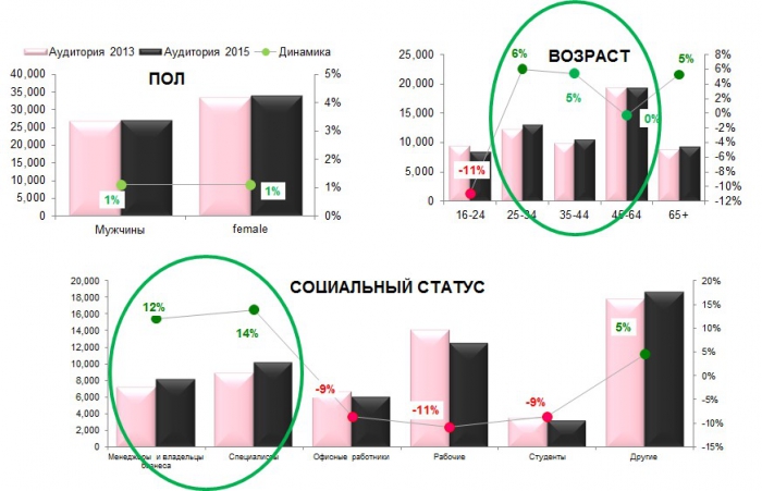 Данные TNS демонстрируют, что пресса как медиа-носитель не перестает быть важнейшим каналом коммуникации с активной (25-44) и обеспеченной аудиторией – рост читательской активности показывают такие социальные группы, как менеджеры/владельцы бизнеса и специалисты.
