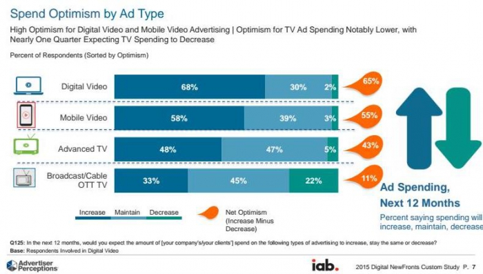 В целом, 68% агентств и маркетологов заявили о своих планах вложиться в digital в следующем году (58% при этом готовы увеличить и расходы на mobile). Увеличение трат на digital, с точки зрения Грива Шеррилла, старшего вице-президента IAB, наглядно демонстрирует тенденцию захвата цифровым видео рекламных бюджетов компаний.