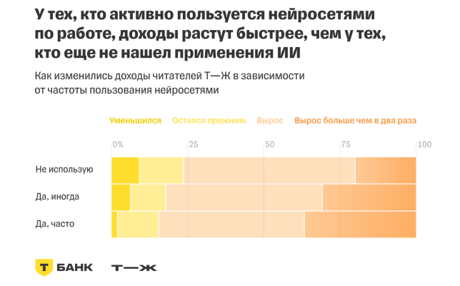 Эксперты уверяют, что использование нейросетей увеличивает шансы на рост доходов — причем положительный вклад вносит и периодическое, и очень активное использование инструмента.