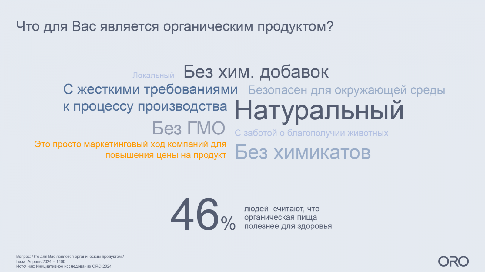 46% людей считают, что органическая пища полезнее для здоровья. Команда ORO выяснила, что для покупателей значит термин «органический продукт».