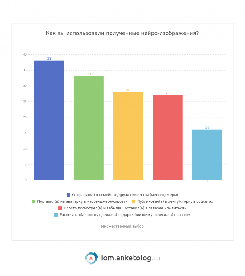 Две трети пользователей осваивают сервисы методом проб и ошибок, лишь меньшая доля обращается к обучающим видео, статьям или помощи знакомых. При этом треть опрошенных (27%) готова доверить нейрофотосессию специалисту.