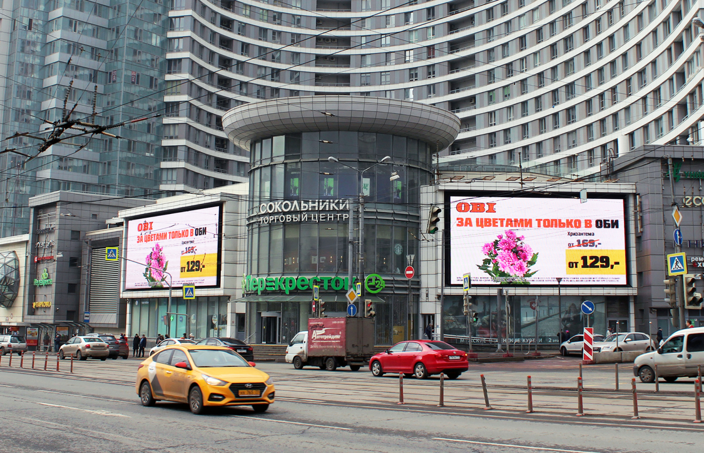 Два медиафасада размерами 17,5×7 и 14,5×7 и общей площадью 224 м2 работают в режиме единого носителя и расположены на одной из самых оживленных магистралей города Москвы рядом со станцией метро «Сокольники» и строящейся в данный момент станции «Стромынка» Большой Кольцевой Линии московского метро, а также в непосредственной близости к ТТК.
