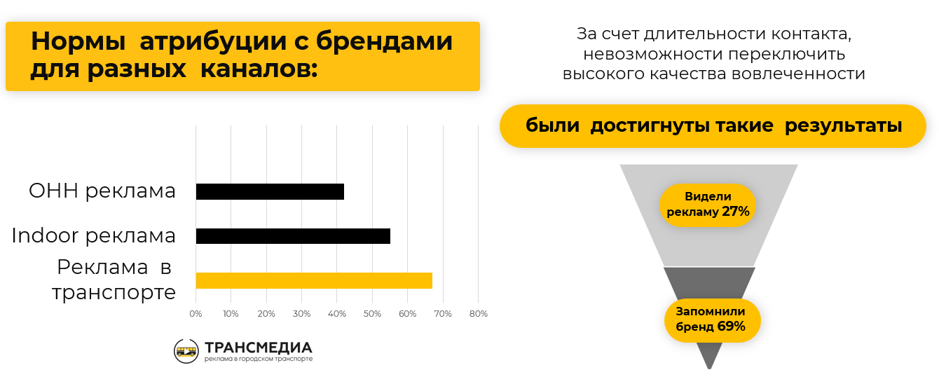 Для сравнения: средняя норма атрибуции для OOH рекламы составляет 42%, а для indoor-рекламы — 55%.