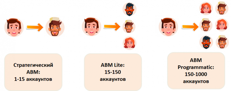 Первое, с чего начинается работа с узкой целевой аудиторией — это подготовка списка целевых клиентов. В АВМ различаются три стратегии, в зависимости от количества компаний, попадающих в такой список.