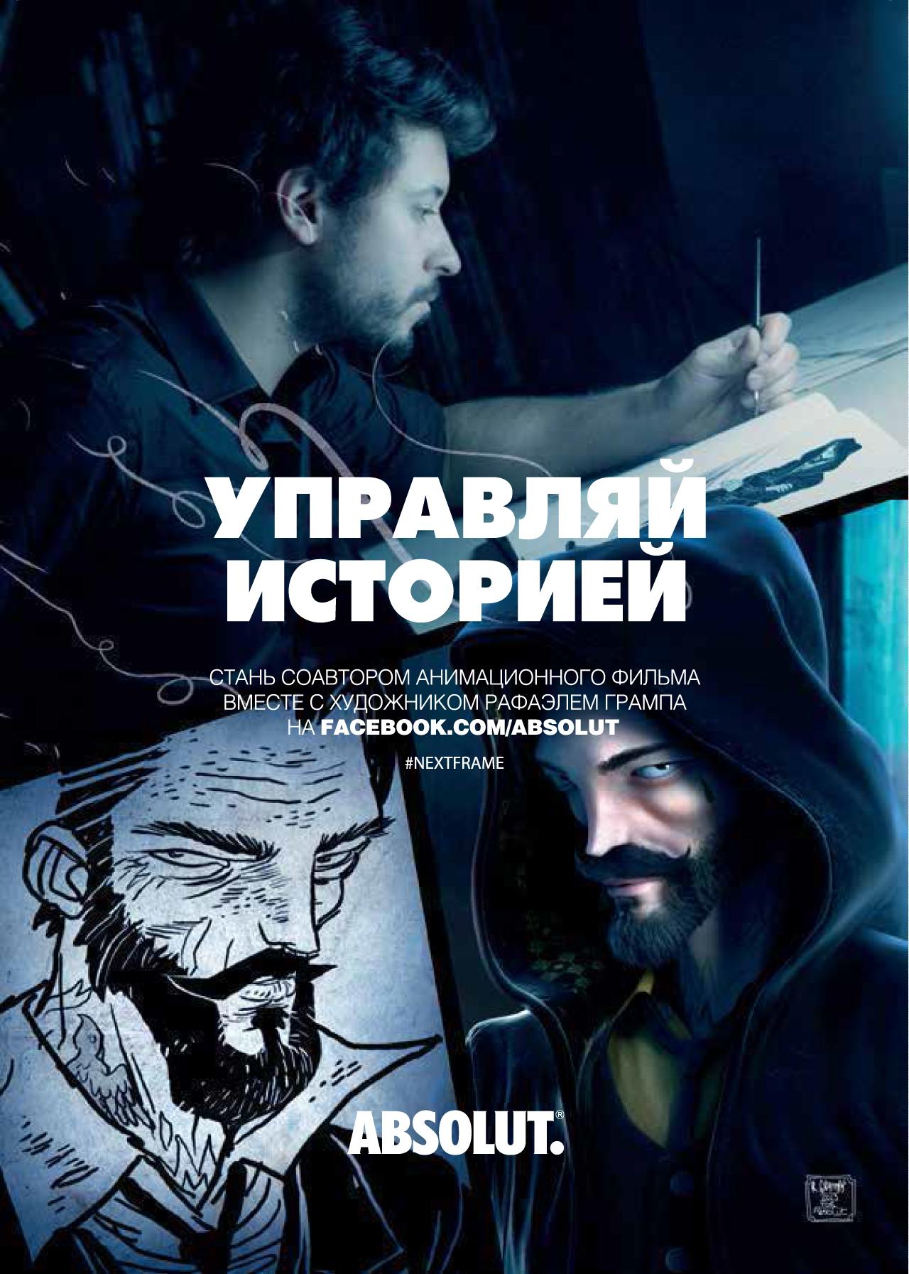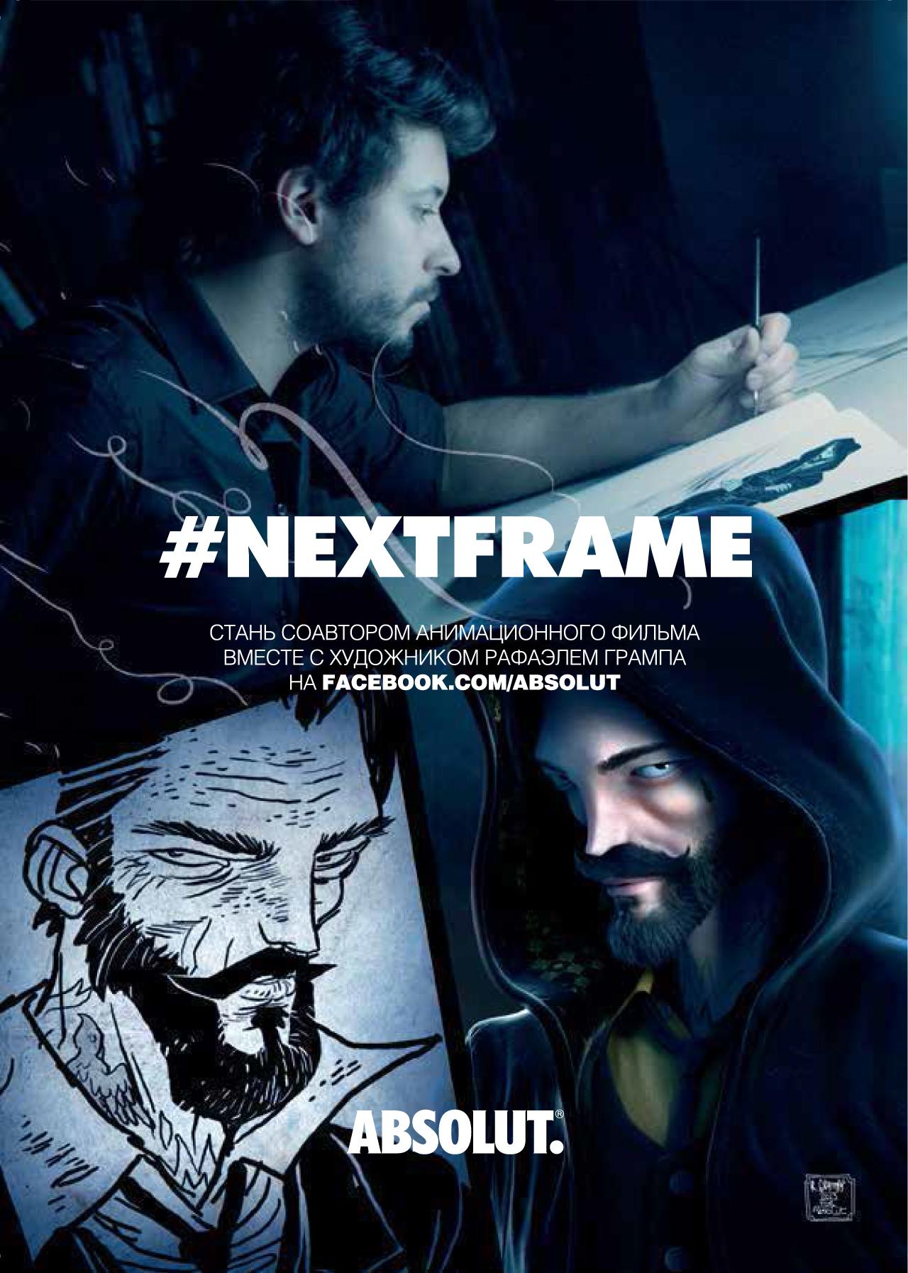Шведский водочный бренд Absolut совместно с бразильским художником комиксов Рафаэлем Грампа запустили проект Next Frame, который приглашает зрителей со всего мира принять участие в создании сюжета анимационного фильма, чтобы доказать, что каждый человек- творец своей судьбы.