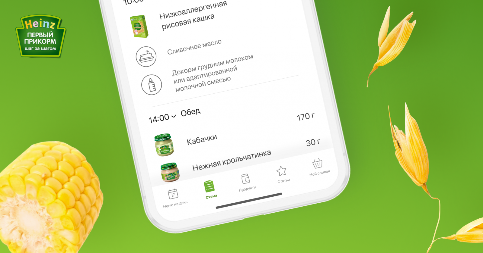 Логика работы приложения и рекомендуемый план ввода прикорма был разработан специалистами компании Heinz (технологи, маркетологи, педиатр-нутрициолог) на основе Национальной программы оптимизации вскармливания детей первого года жизни в РФ (2018−2019) и рекомендаций ВОЗ.